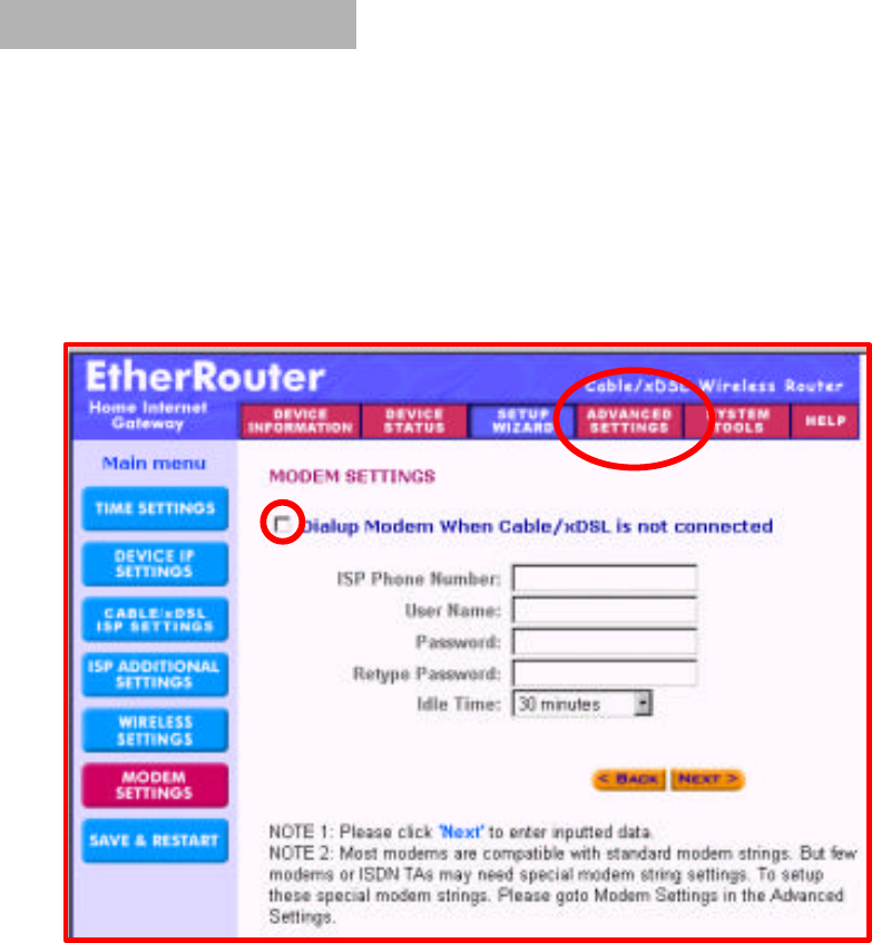 connection fail). If there is no ADSL/Cable service in your area, the dialup backup