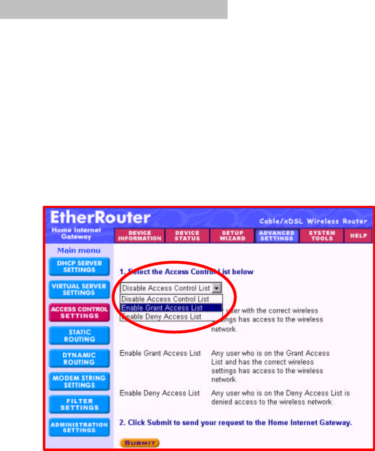 ACCESS CONTROL SETTINGS..................................................................................................26