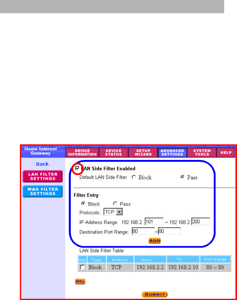 FILTER SETTINGS - LAN FILTER SETTINGS...........................................................................30