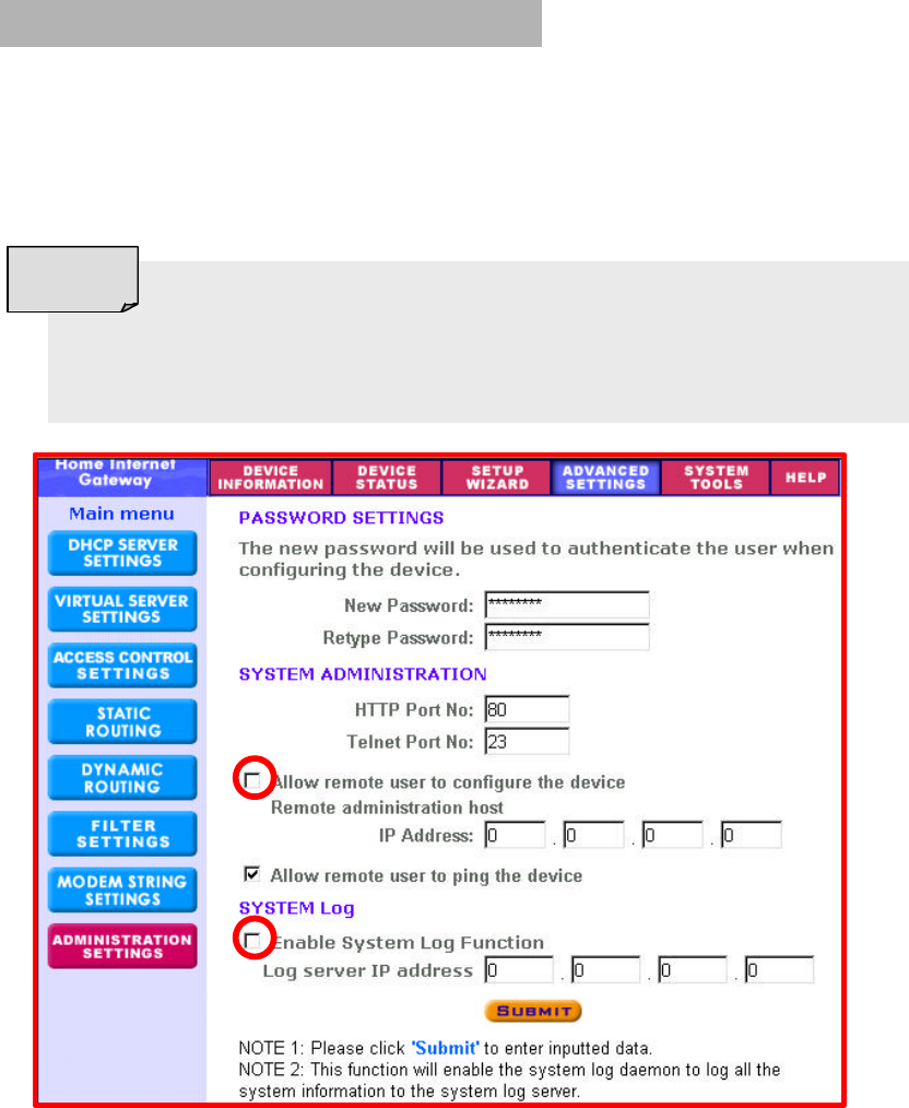 ADMINISTRATION SETTINGS.....................................................................................................33