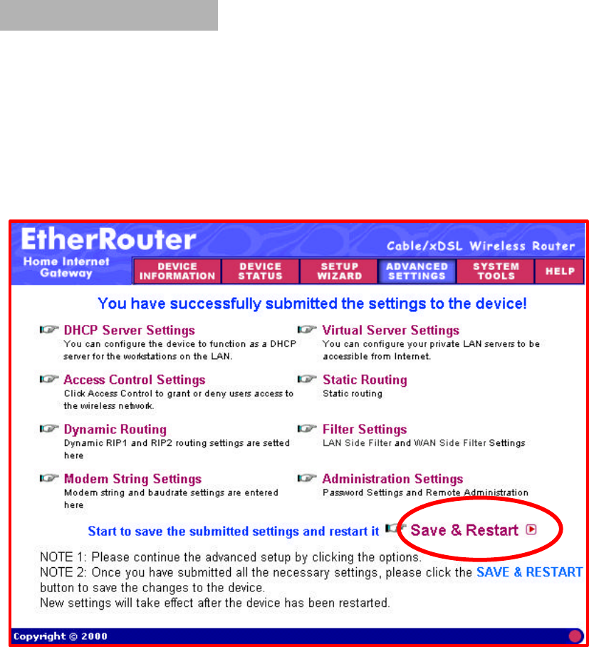 NOTE: you must select Apply and Save Changes before leaving the menu or