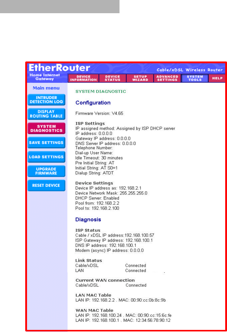 Select Diagnostic to perform basic hardware checking and display the gateway’s