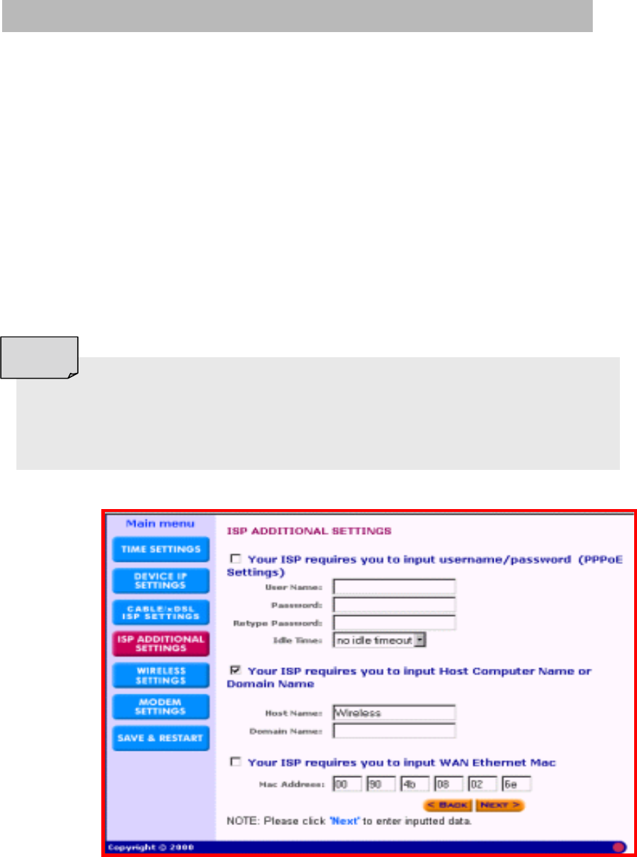 ISP ADDITIONAL SETTINGS (PPPOE SETTINGS)................................................................................ 16