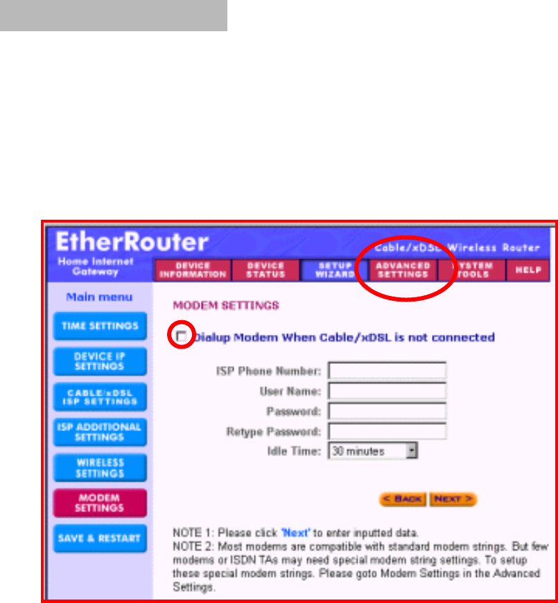 used as a dialup backup to the ADSL/Cable connection should the ADSL/Cable