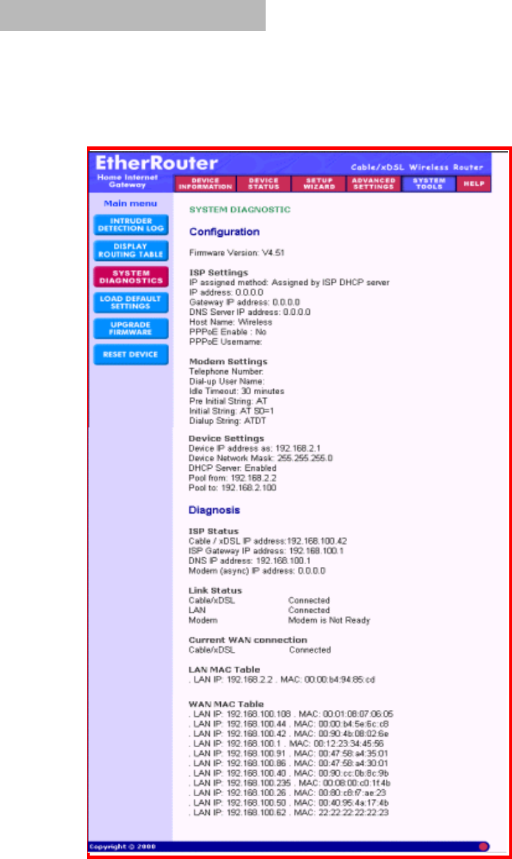 Select Diagnostic to perform basic hardware checking and display the gateway’s