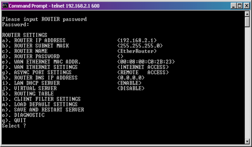 telnet client to remotely configure the gateway using a menu system.