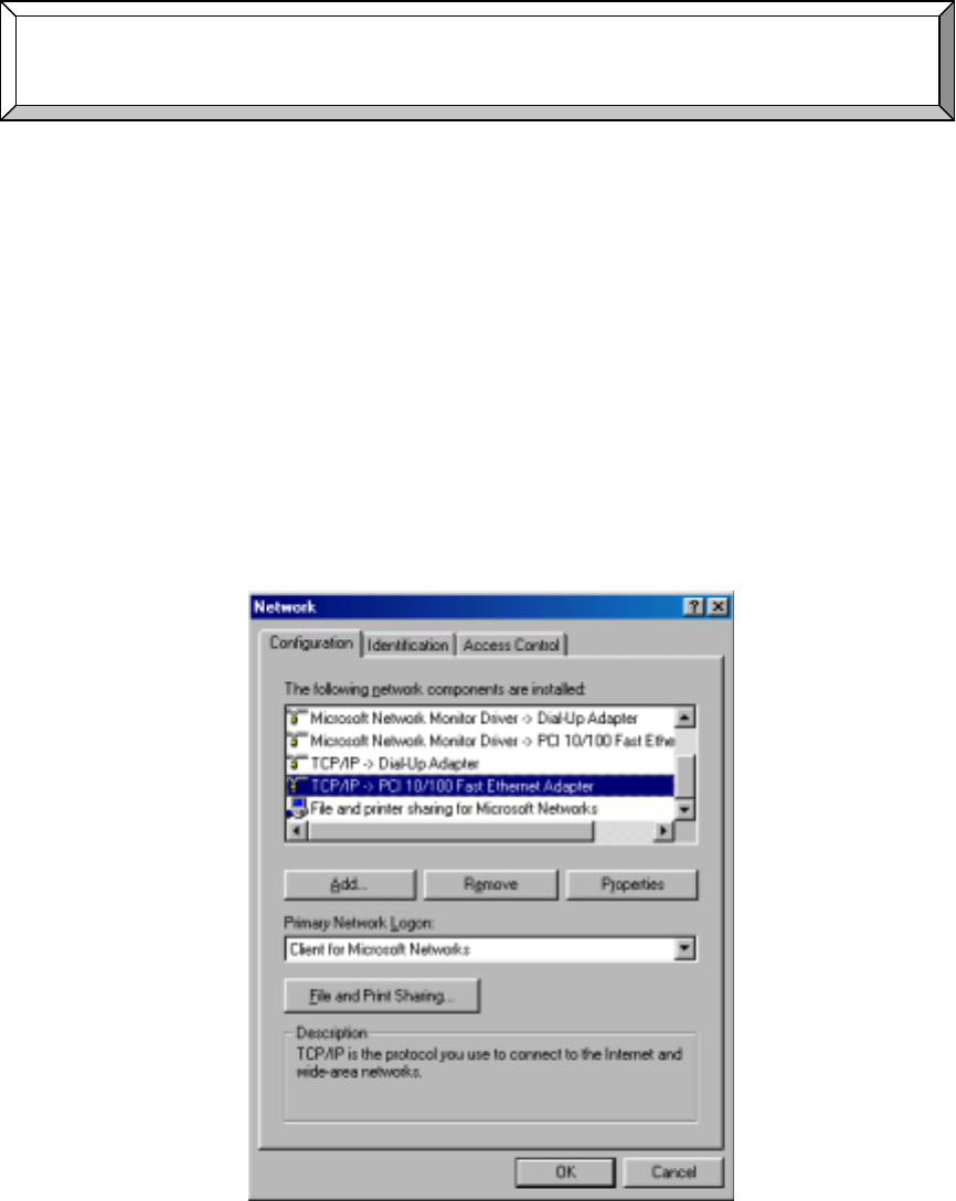address. The MAC address in windows 95/98 is called the Adapter Address.