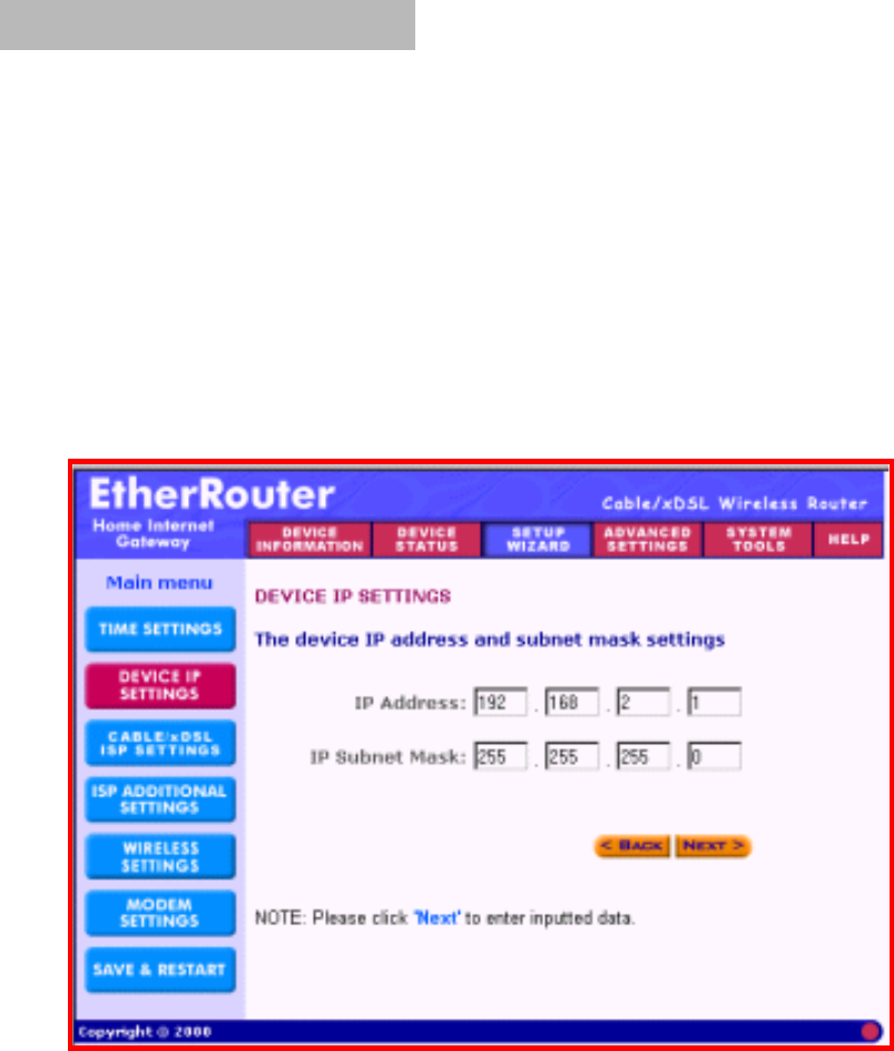 (default IP address is 192.168.2.1) then press Enter.