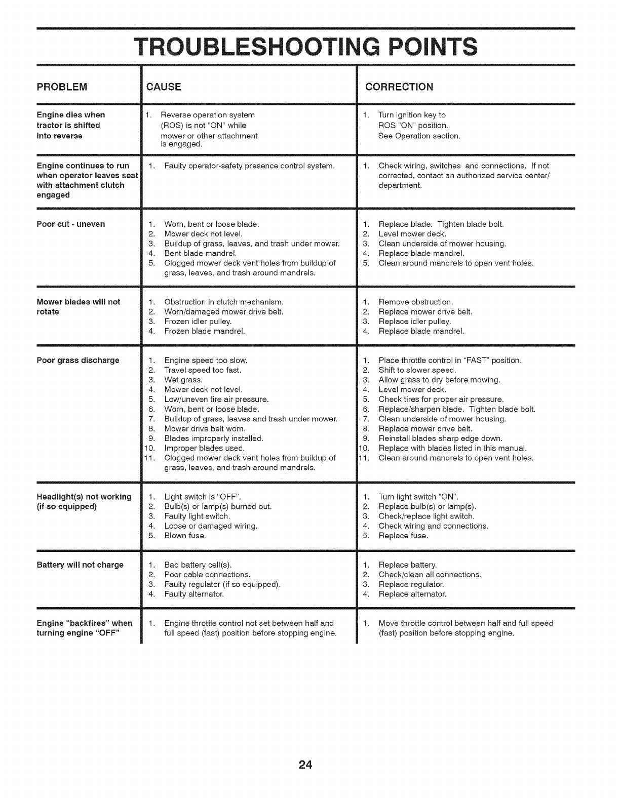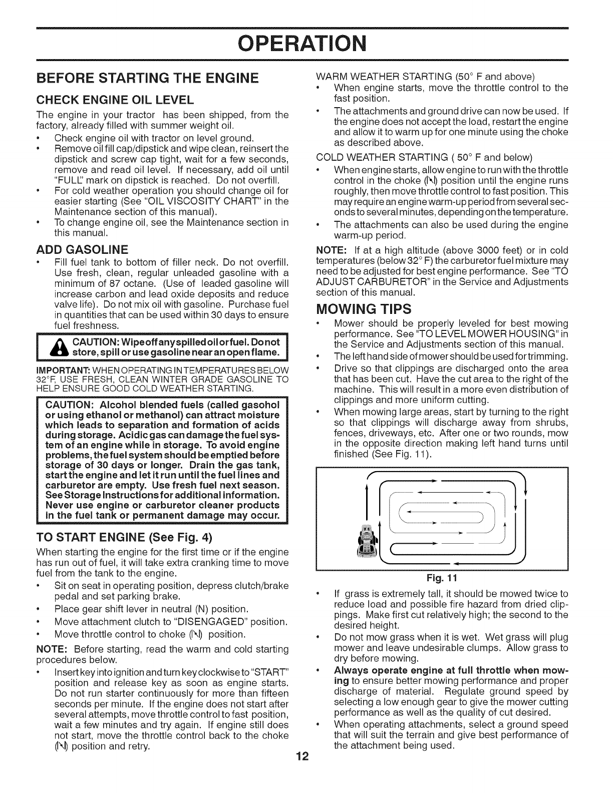 •Operate machine only in daylight or good artificial
