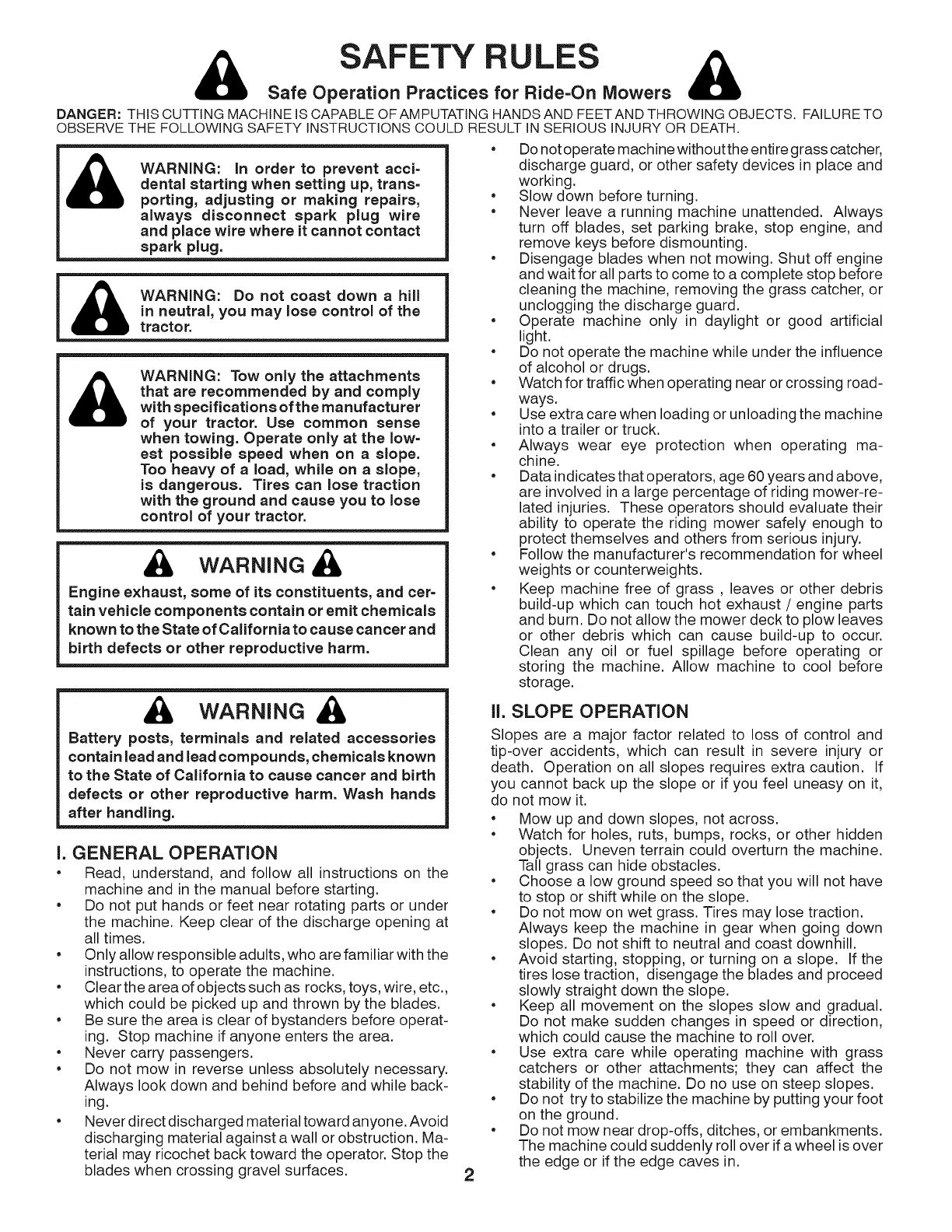 Safe Operation Practices for Ride=On Mowers