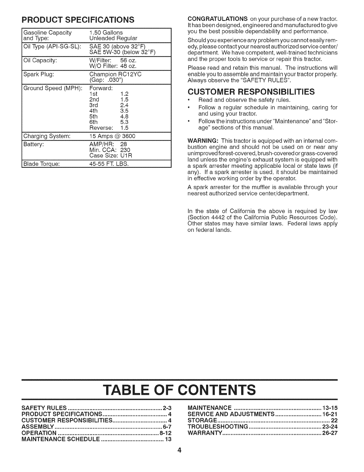 in workmanship, and repair or replacement of any defective part. Ariens shall not be liable for incidental, special, or