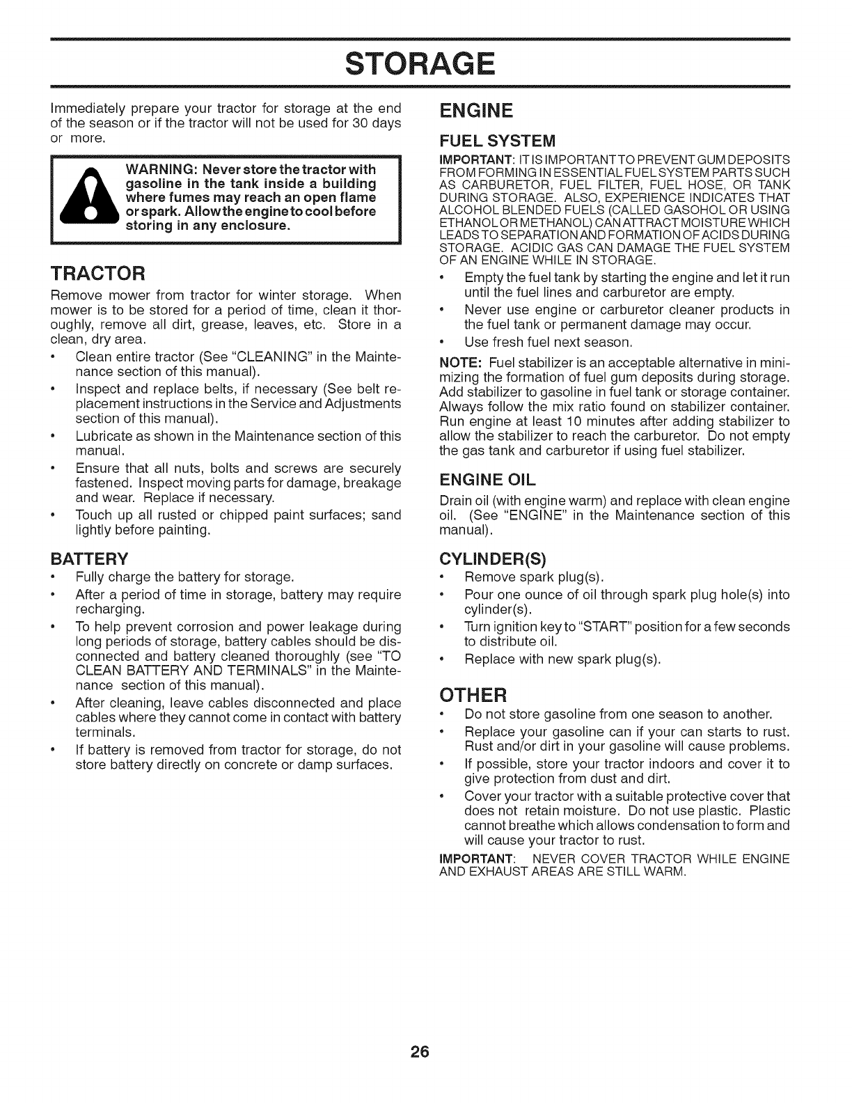 Clean any oil or fuel spillage before operating or storing