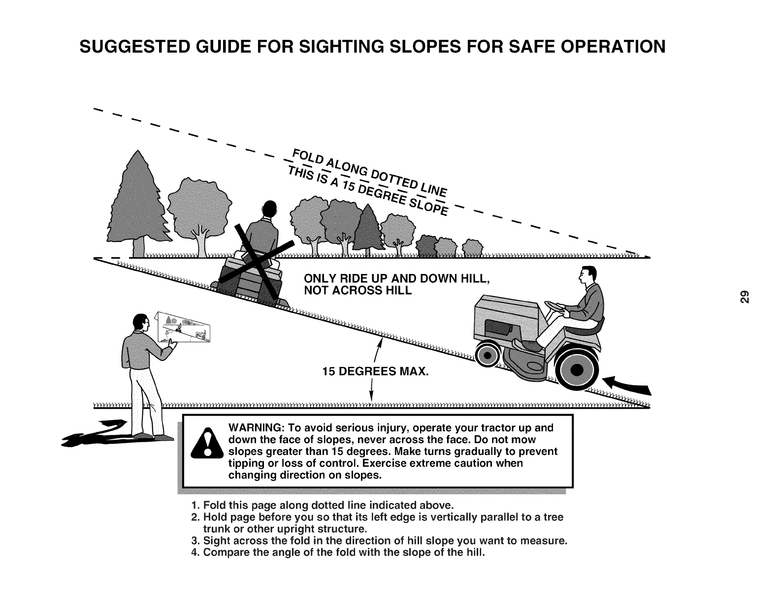 •Mow up and down slopes, not across.