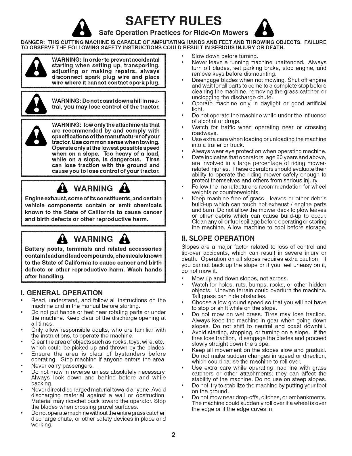 Safe Operation Practices for Ride=On Mowers