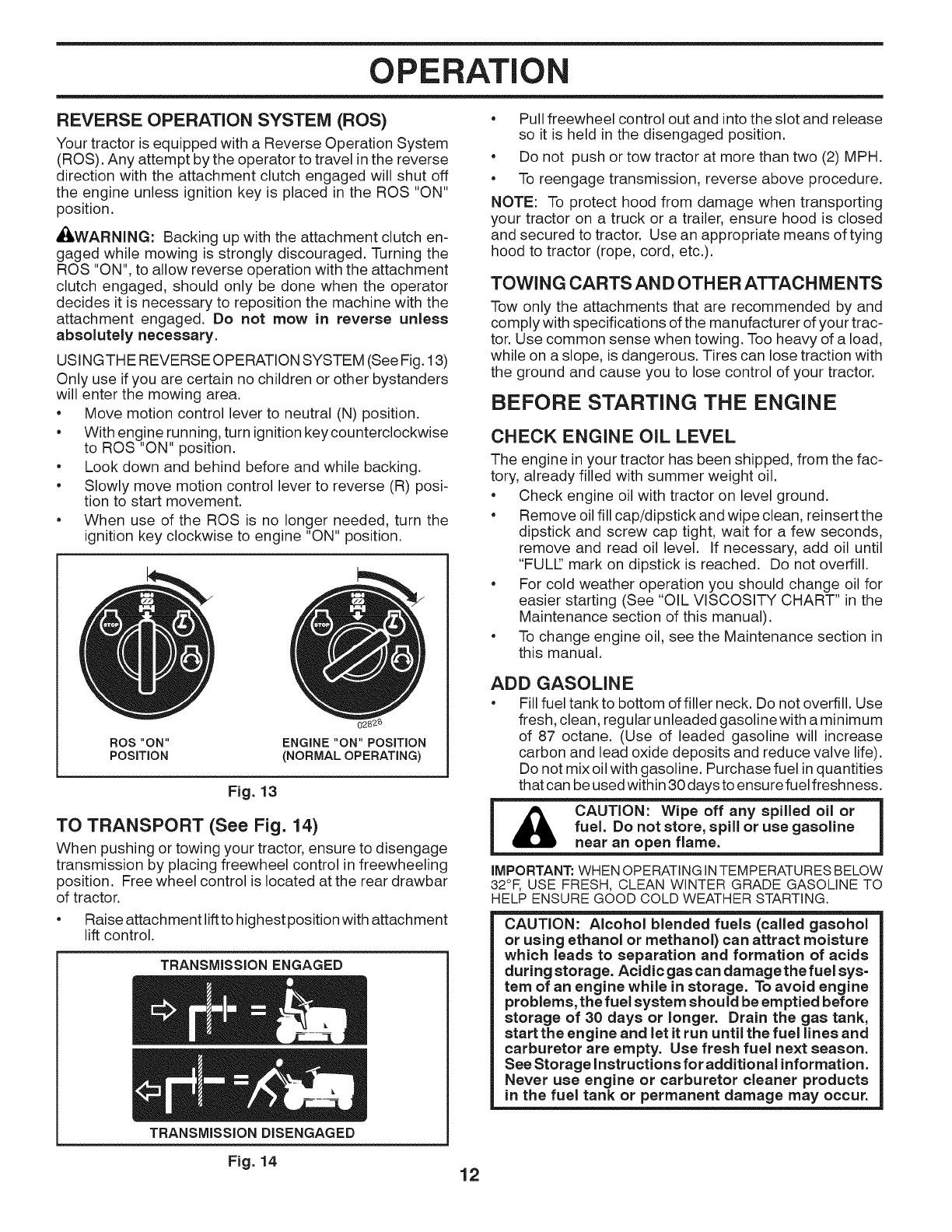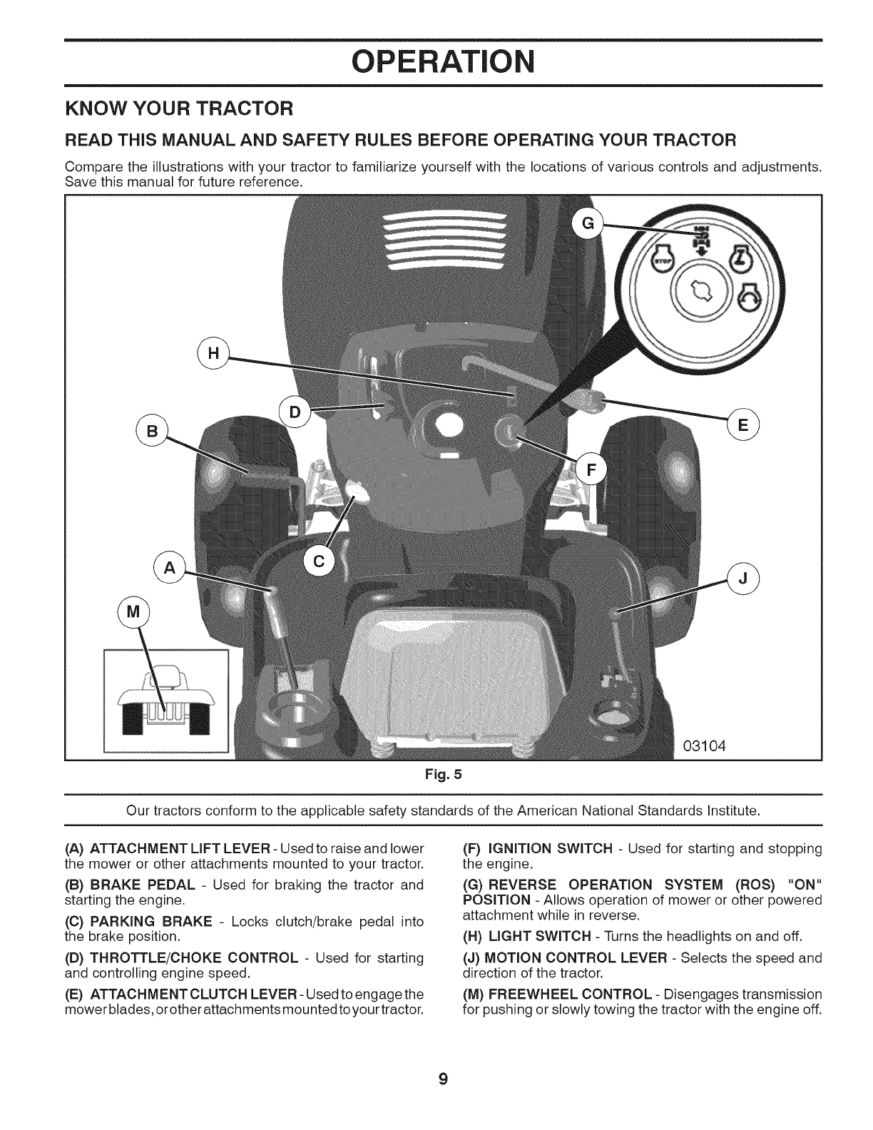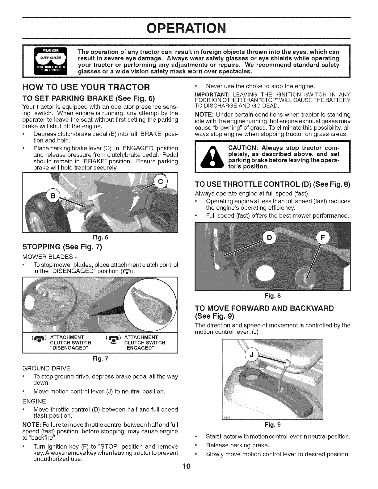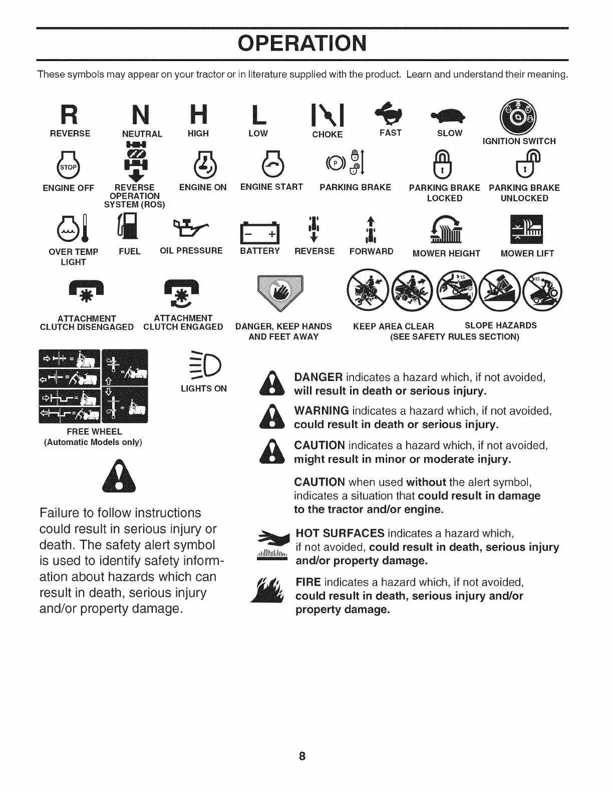 WARNING: Do not coast down ahill in neu-tral, you may lose control of the tractor.