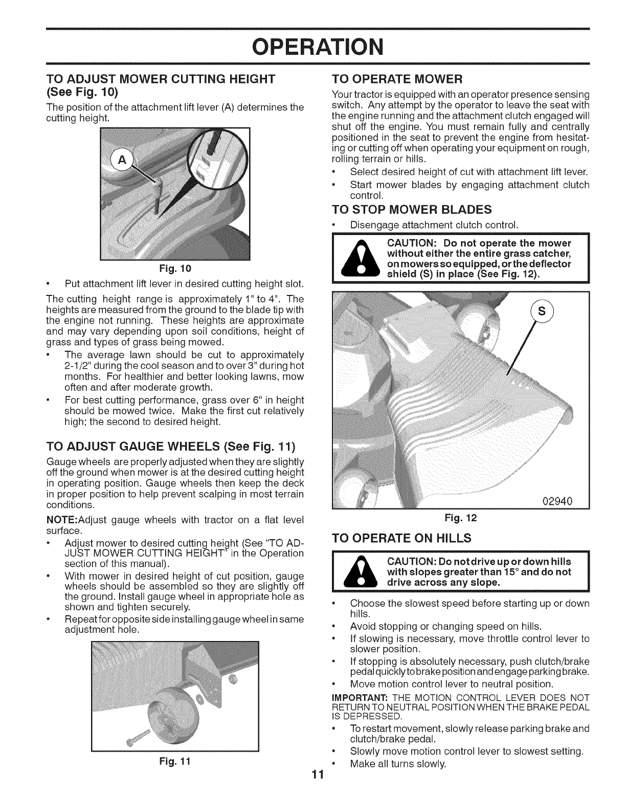 and burn. Do not allow the mower deck to plow leaves