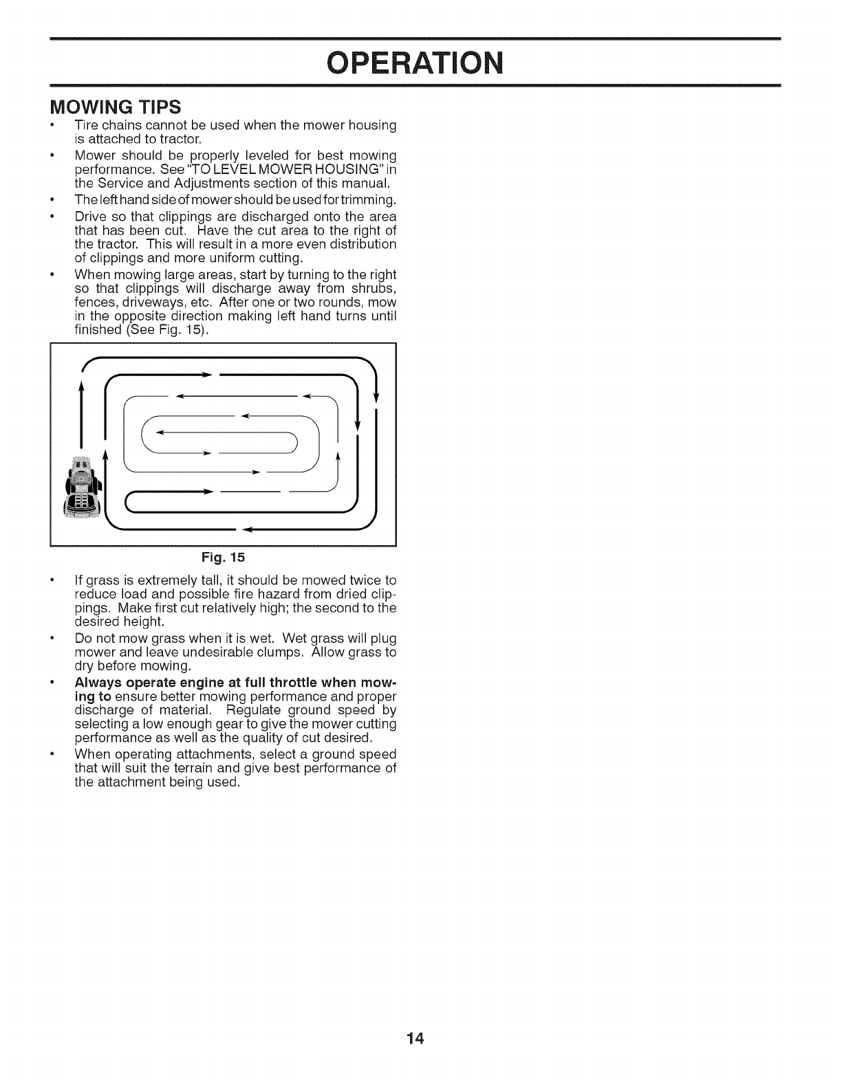 •Do not mow in reverse unless absolutely necessary.