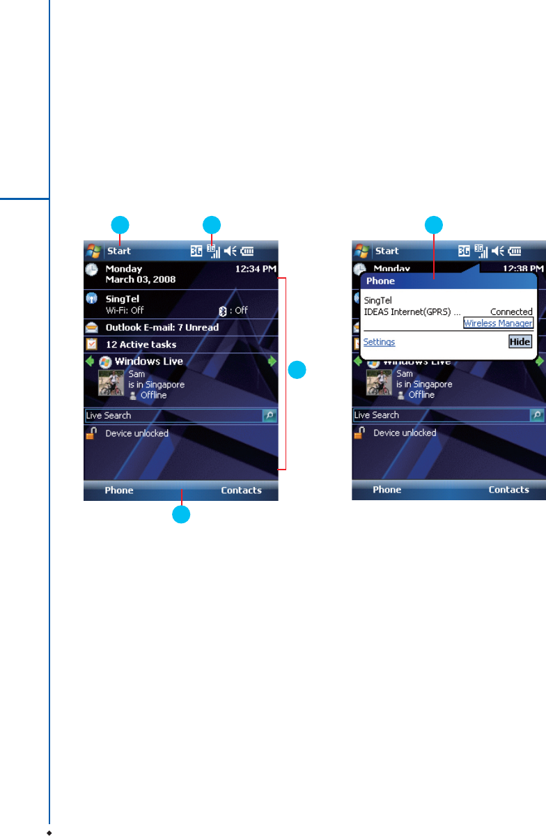 3 End key Press this key to end a call or to return to Today screen from any screen.