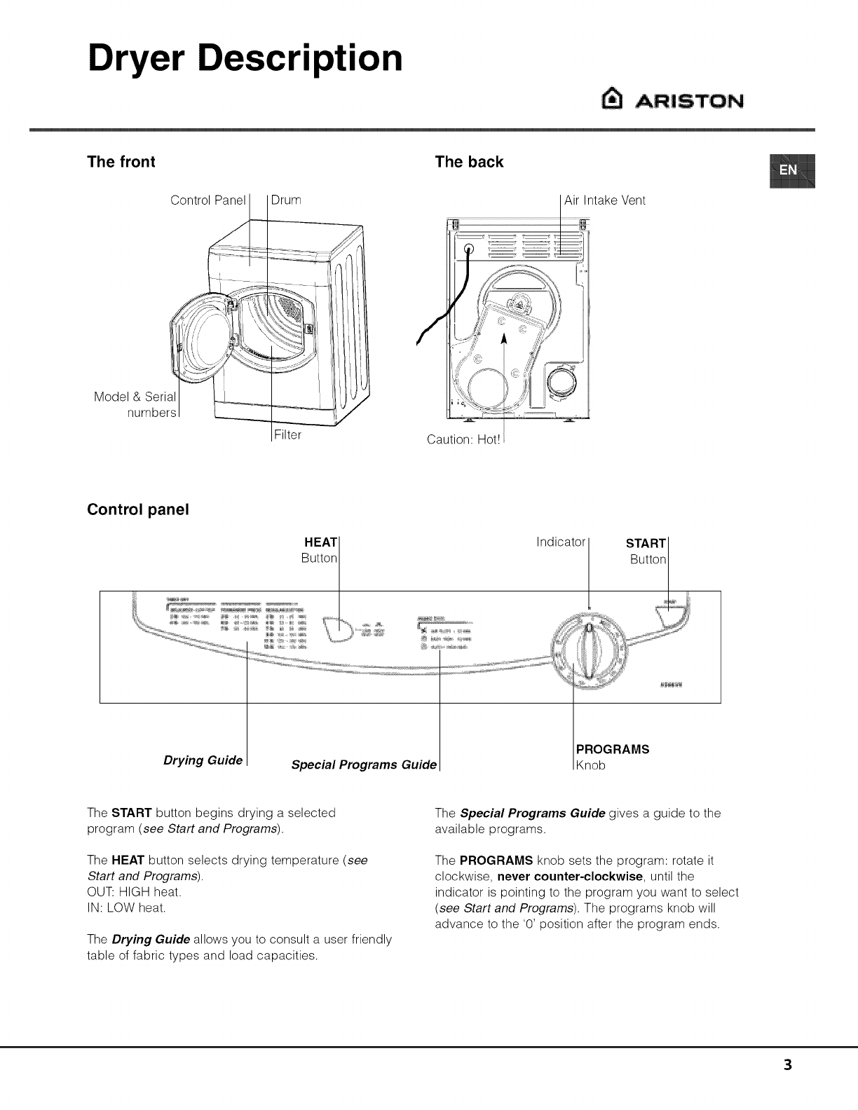Dryer Description, 3