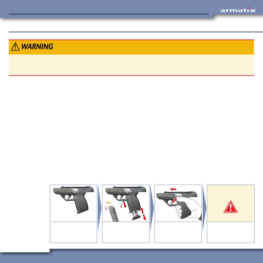 • Never carry the iP1 pistol out of a suitable holster with a cartridge loaded in the chamber.