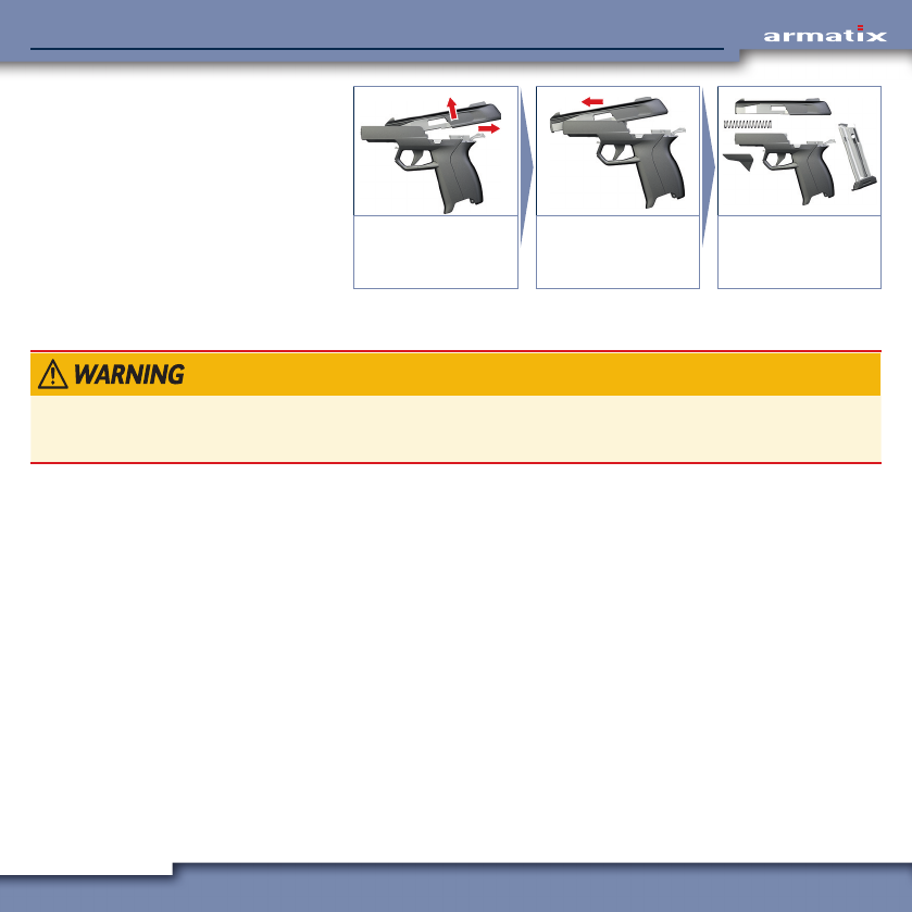 • Always make sure the iP1 pistol is unloaded and that the slide is locked open in the rear-