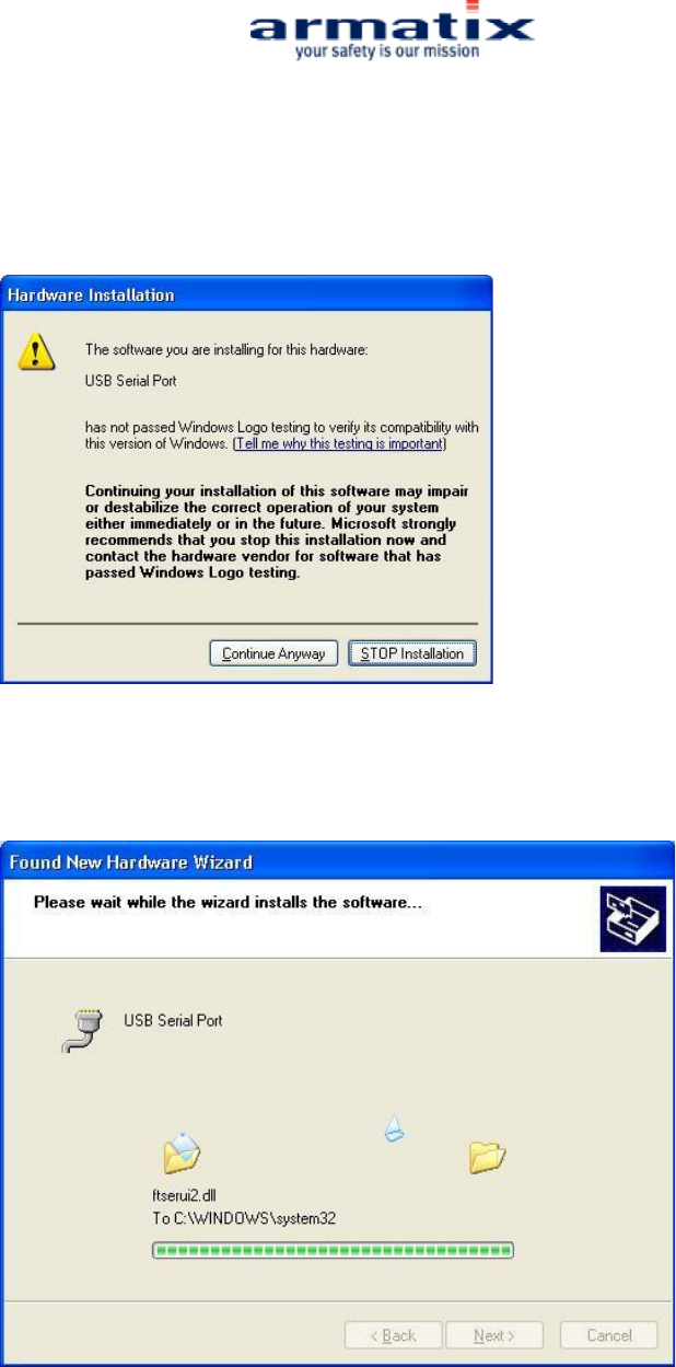 To install the Armatix iS1 device under Windows XP, follow the instructions