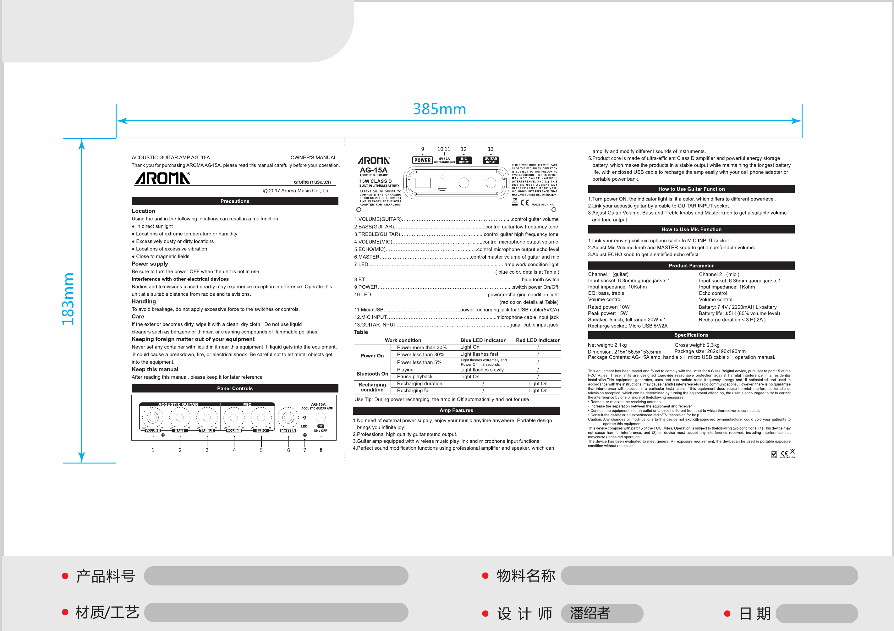 Aroma Music AG-15A ACOUSTIC GUITAR AMP User Manual AG 15A 20180403