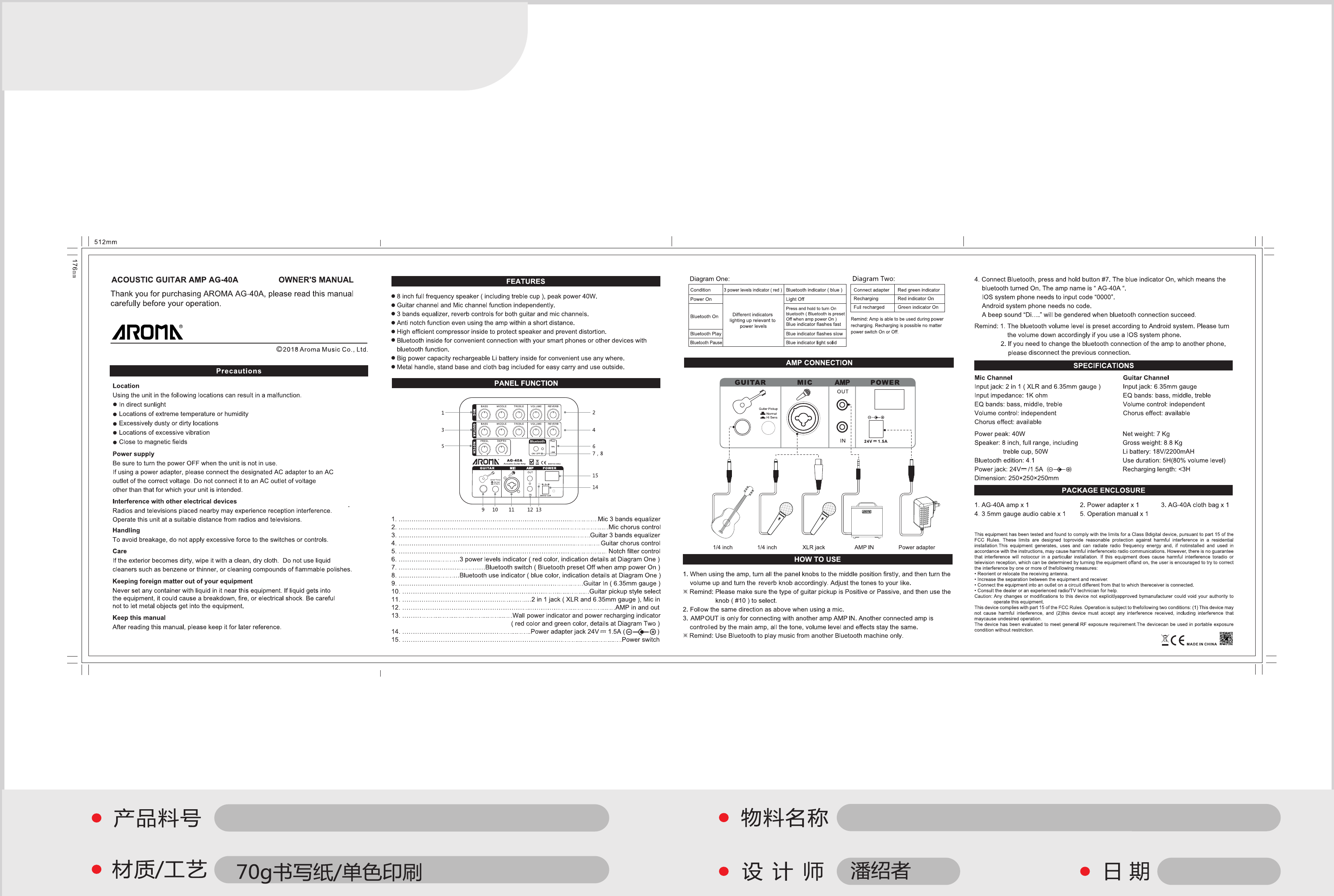 Aroma Music AG-40A ACOUSTIC GUITAR AMP User Manual AG 40A 20180521Q
