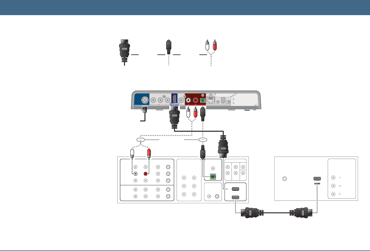 For an HDMI or IEEE-1394 video connection, no additional audio connections to the TV are required.•
