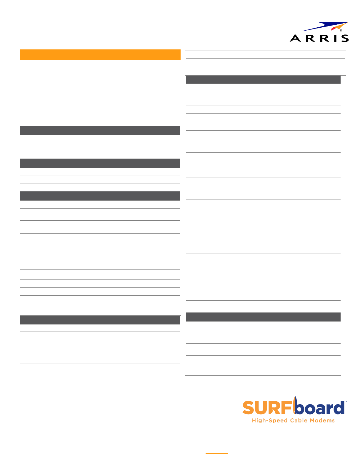 Note: Specifications are subject to change without notice. Copyright Statement: ©2014-2016 ARRIS Enterprises, LLC. All rights reserved. No part of this publication may be reproduced in any form or by any means or used to make any