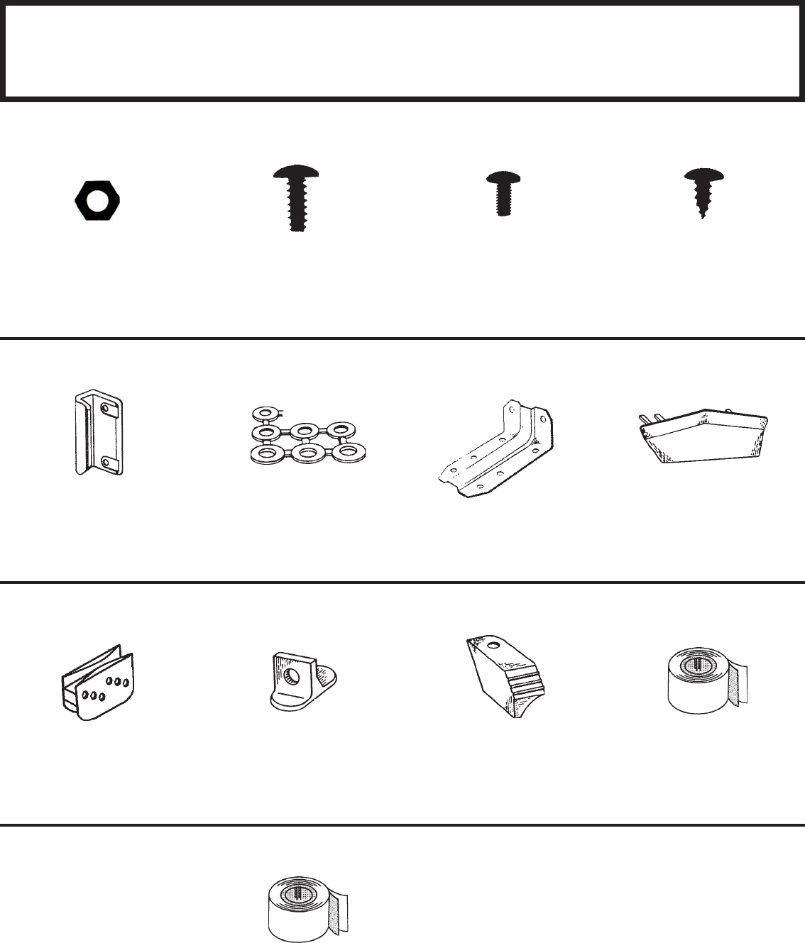 •Familiarize yourself with the hardware and fasteners for easier use during construction. These are
