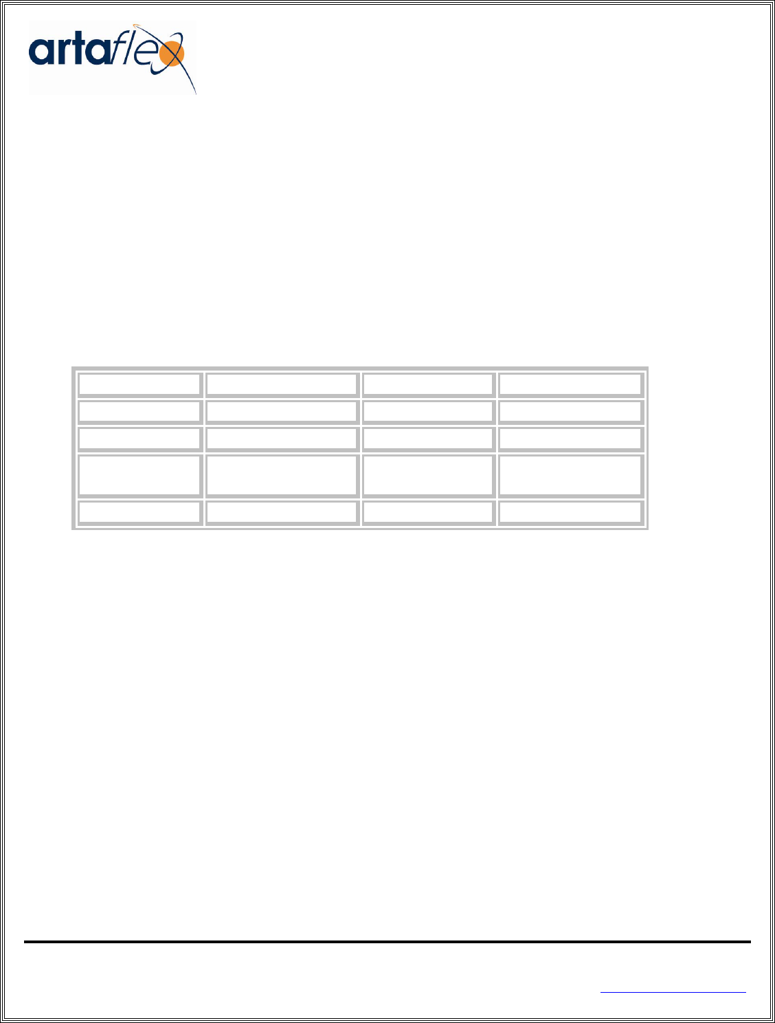 Artaflex Inc. disclaims all liability, including liability for infringement of any proprietary rights, relating to use of information in this document. No