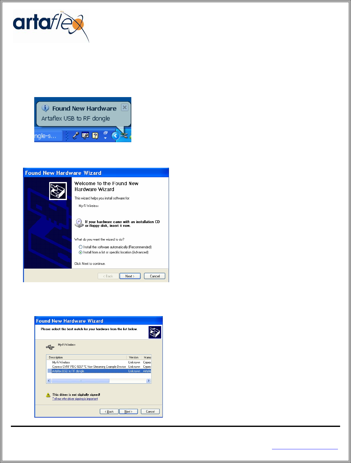 3. When asked for device selection please select “Artaflex USB to RF dongle” from the list