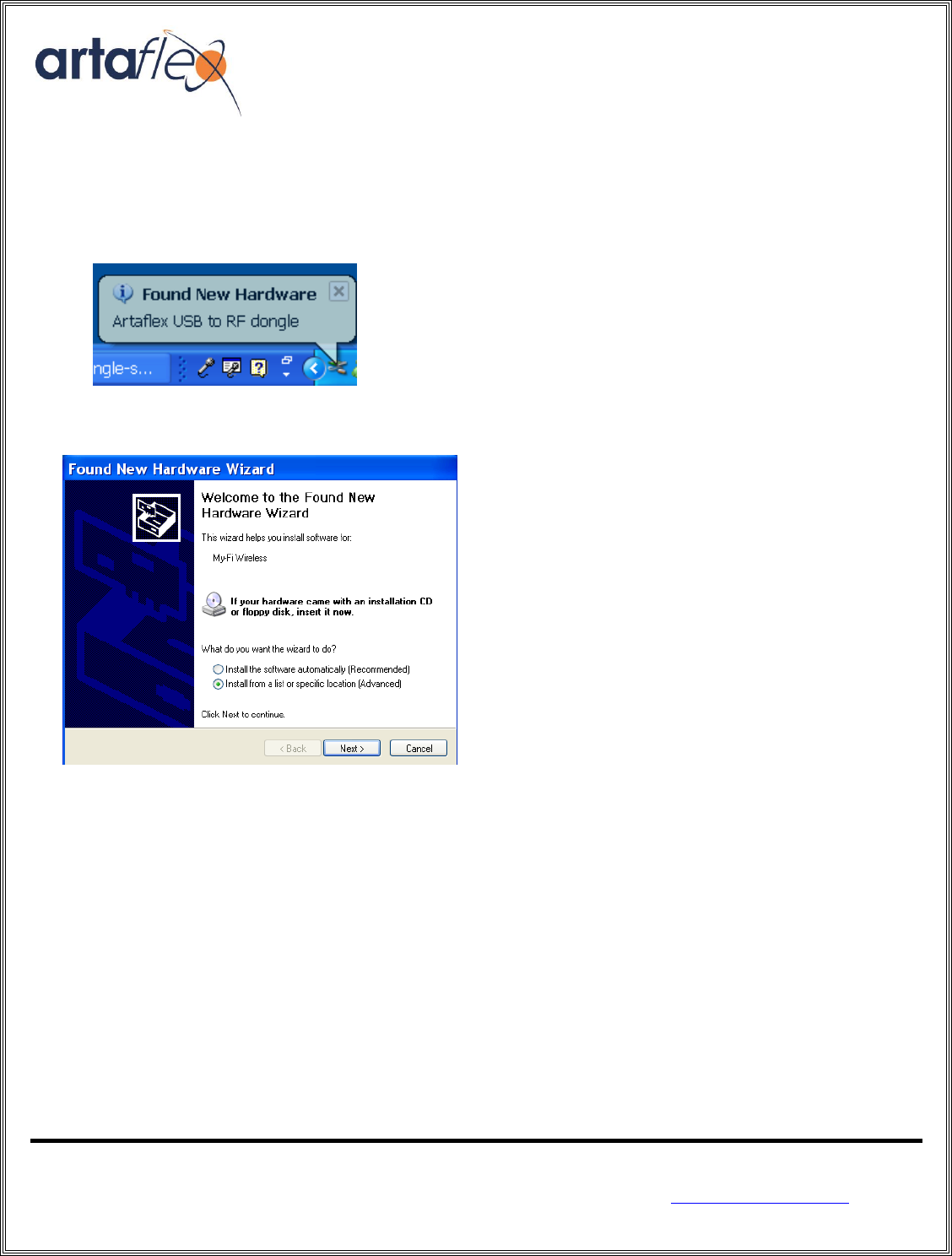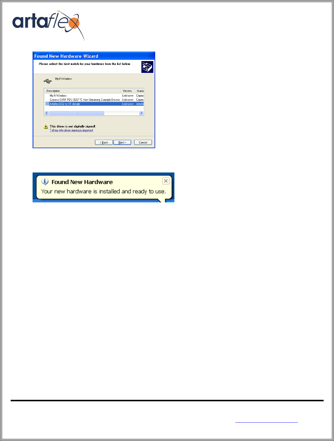 1. Plug in the Artaflex USB dongle to any USB port, you will see the following message .