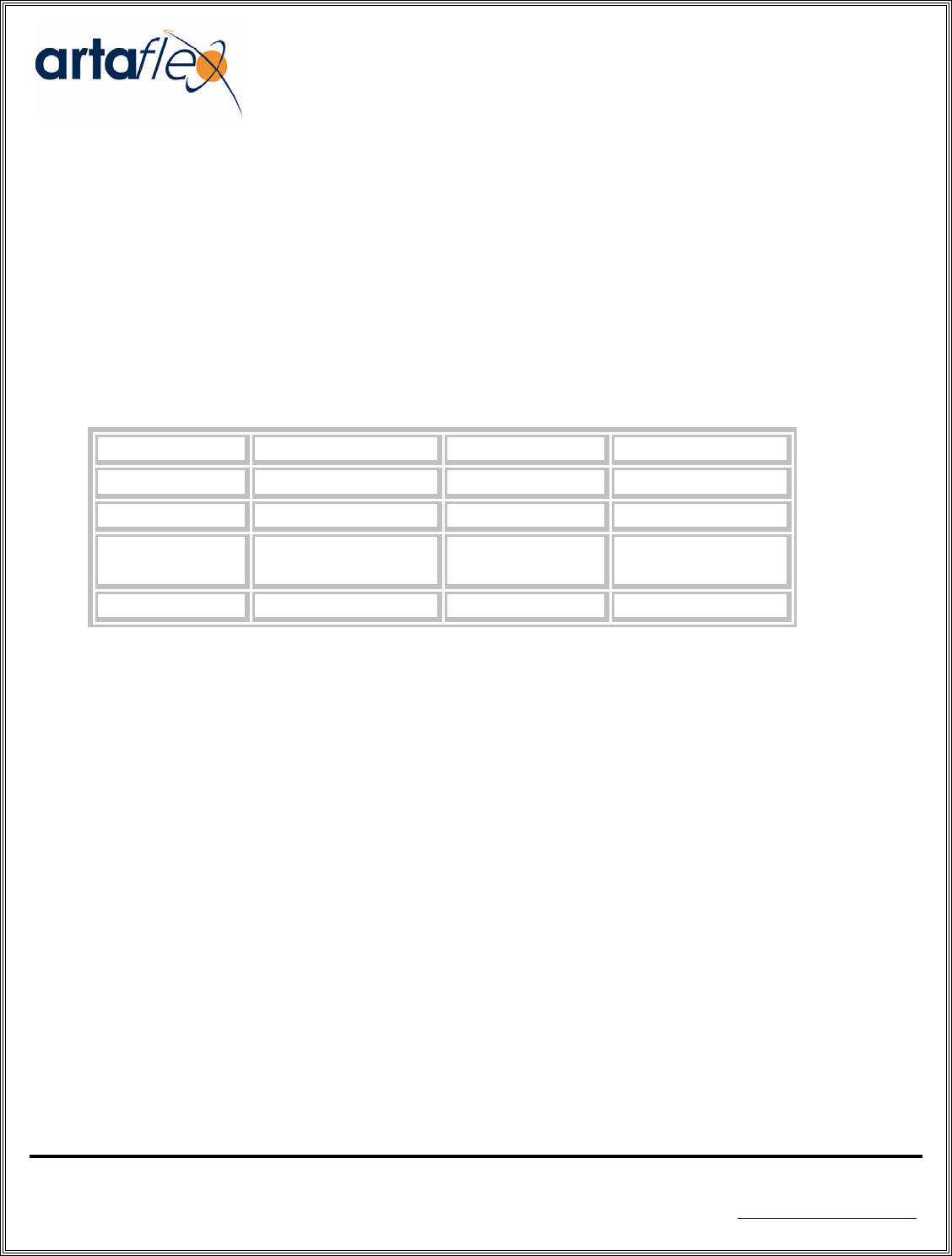 Artaflex Inc. disclaims all liability, including liability for infringement of any proprietary rights, relating to use of information in this document. No