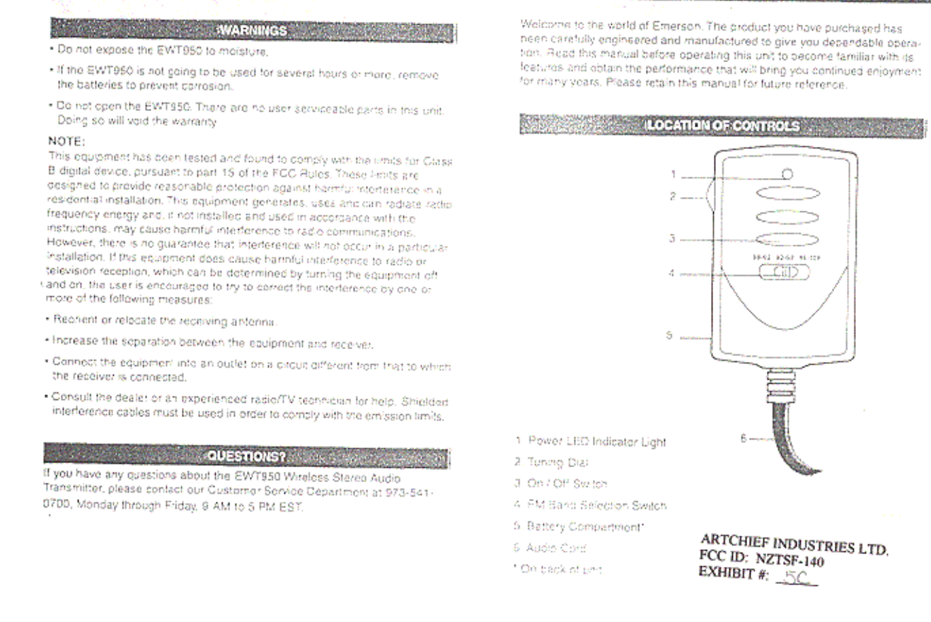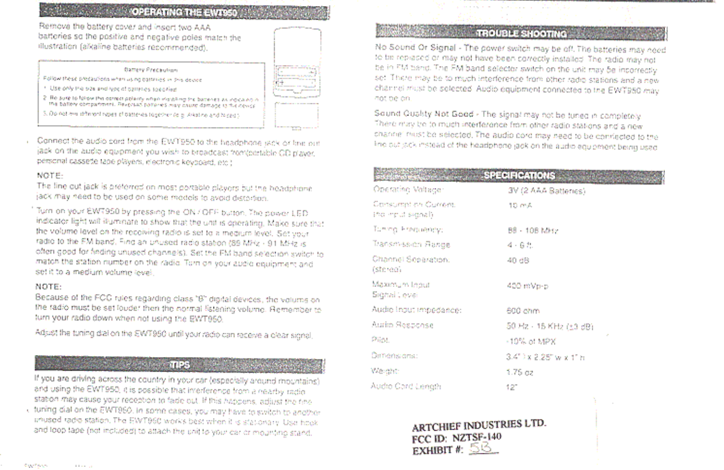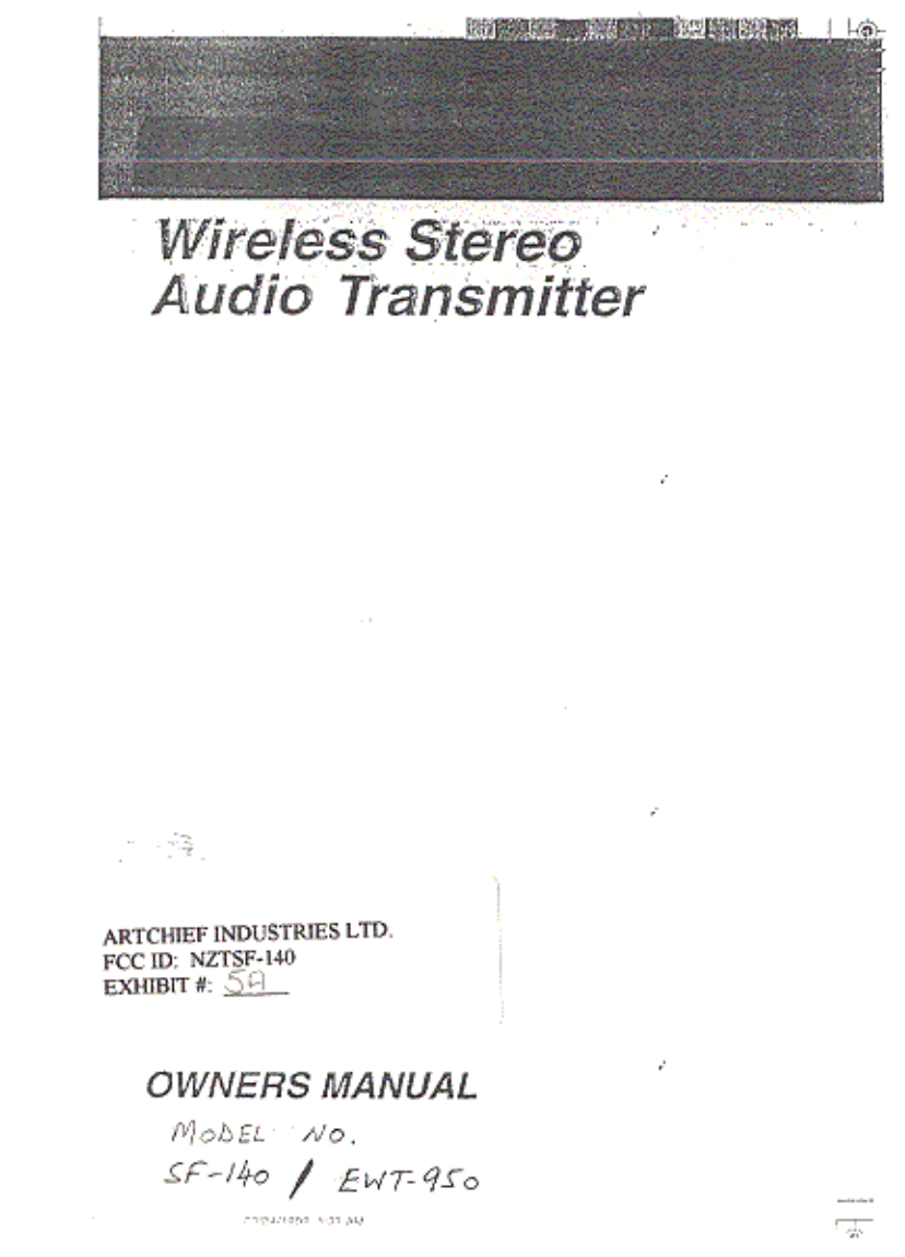 Artchief SF-140 Wireless Stereo Audio Transmitter User Manual Instruction Manual