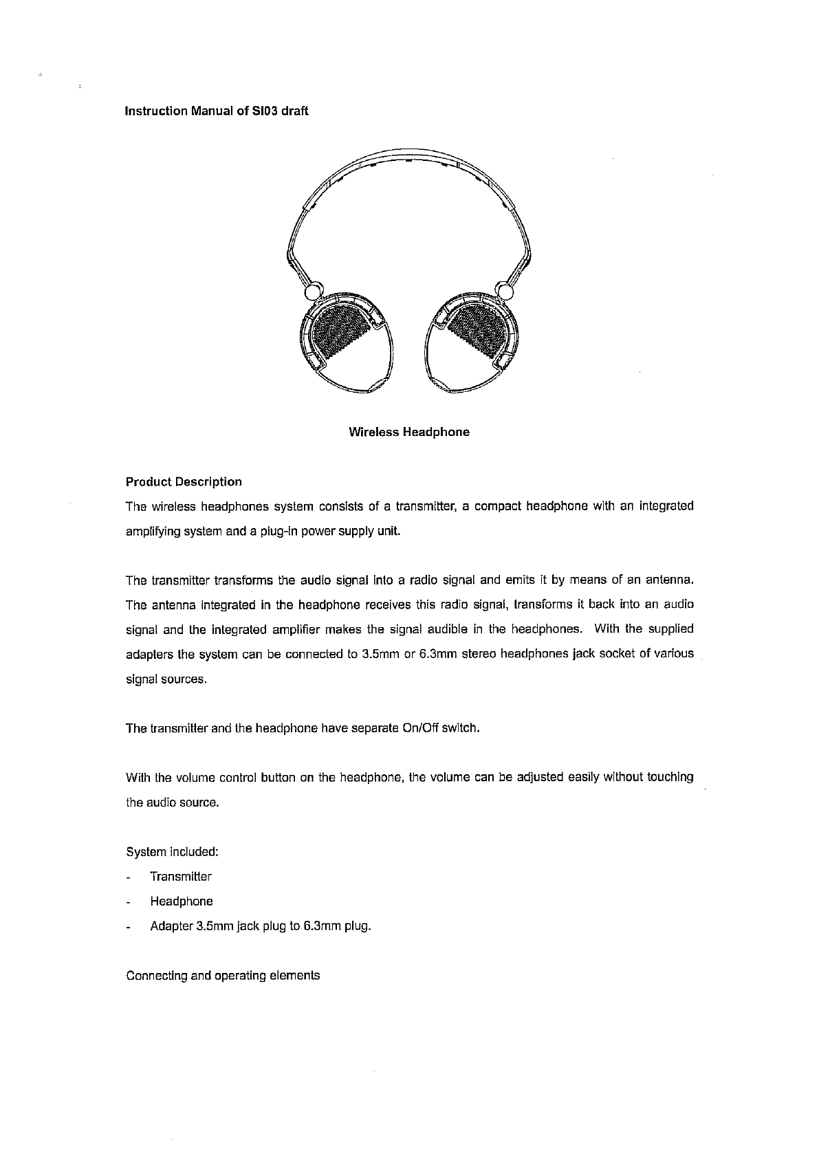 Artchief Industries Ltd. Base Transmitter for Wireless Headphone Manual
