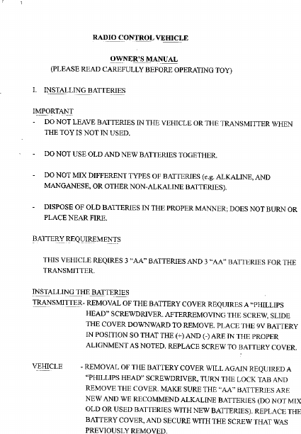 Artin Co 02106 R/C Car Controller User Manual users manual