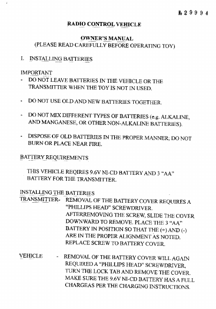 Artin Industrial Co Ltd R/C Car Receiver (49 MHz) users manual