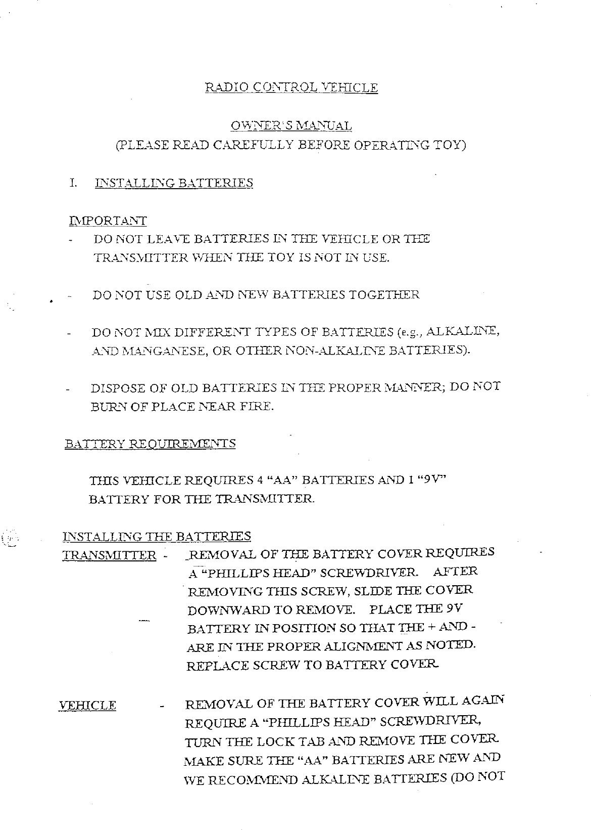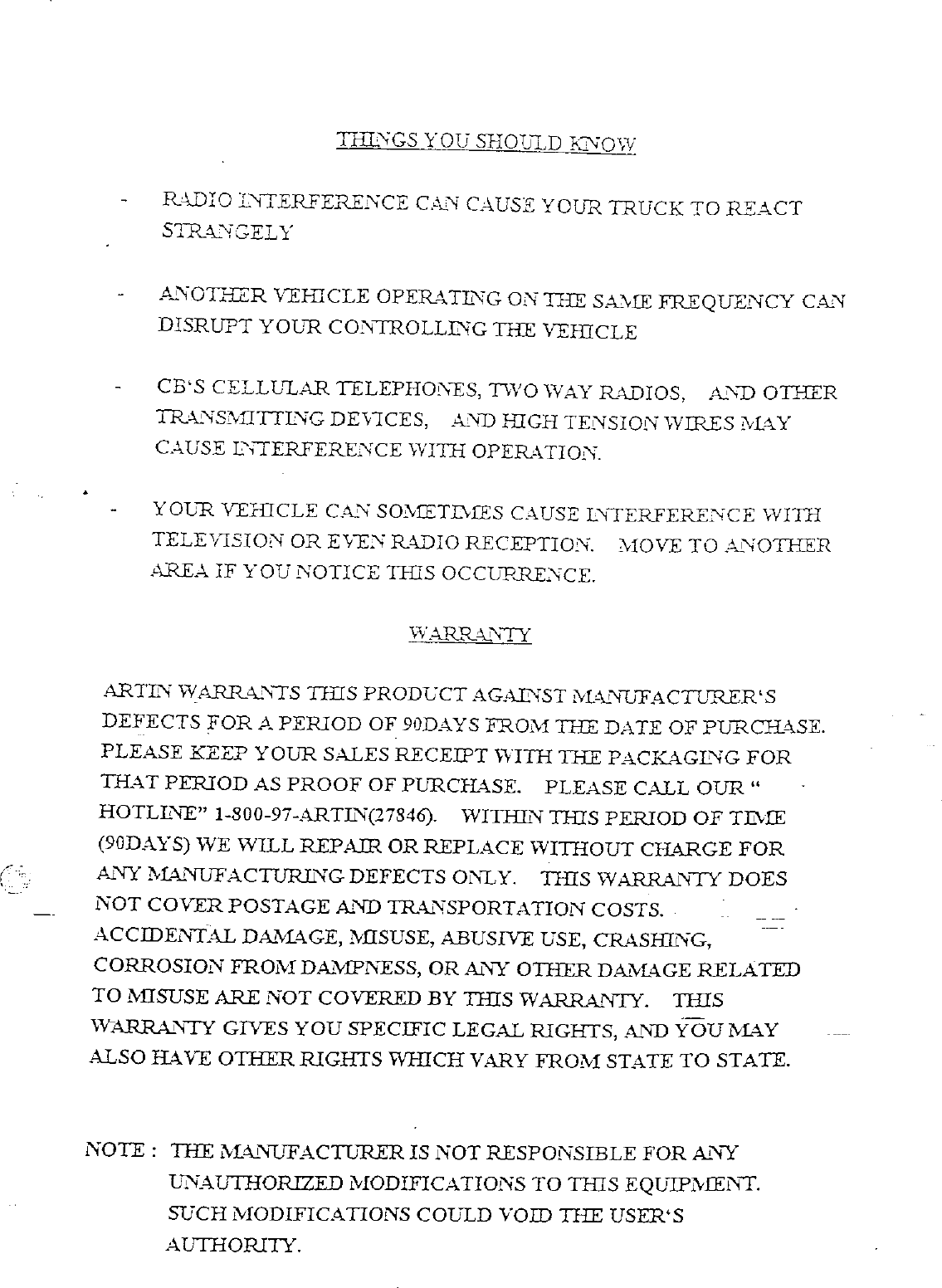 Artin Co 43910T R/C Toy Transmitter User Manual 40061
