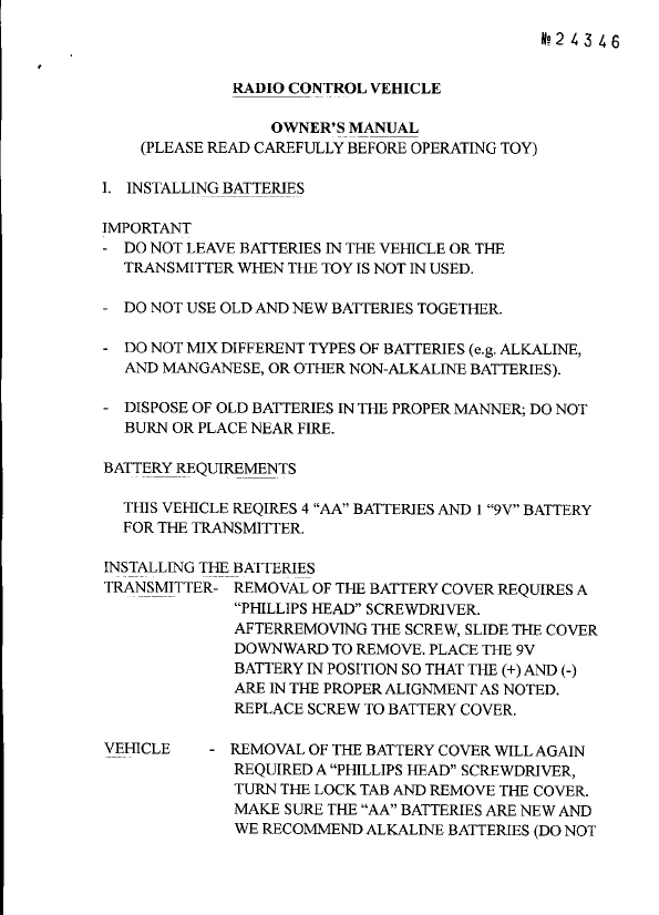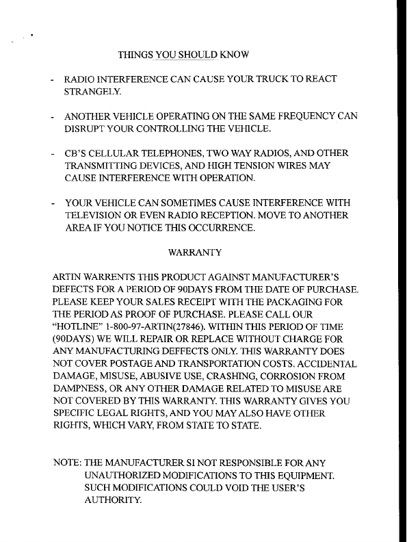 Artin Industrial Co Ltd Radio Control Toy Car users manual