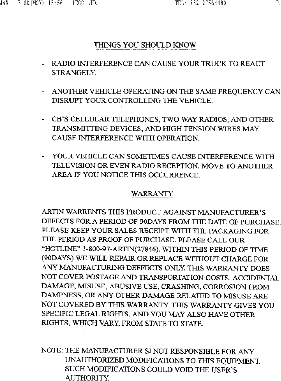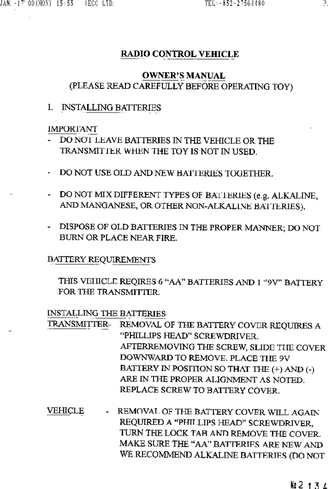 Artin Co 47121 Toy Remote Control TX User Manual page