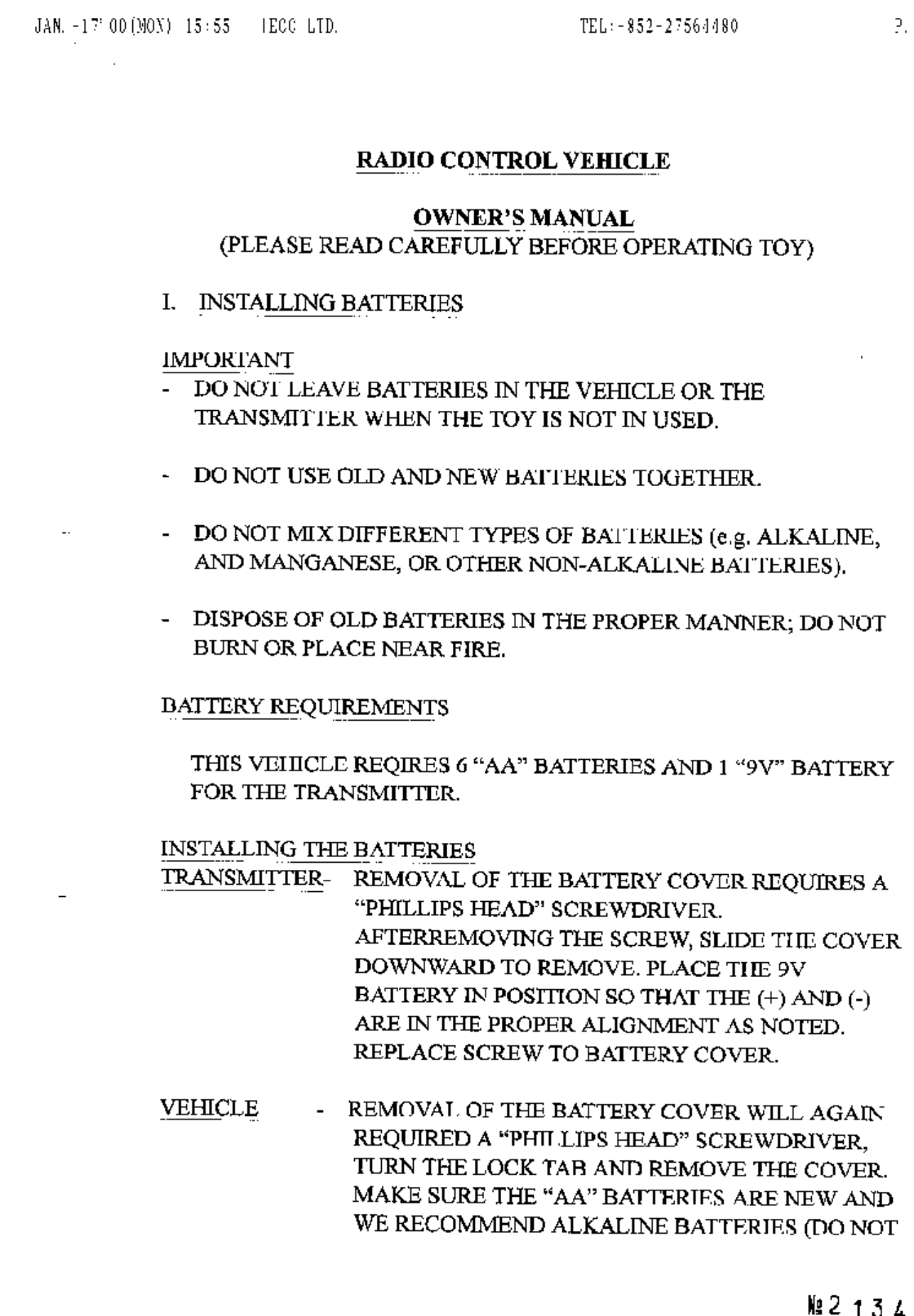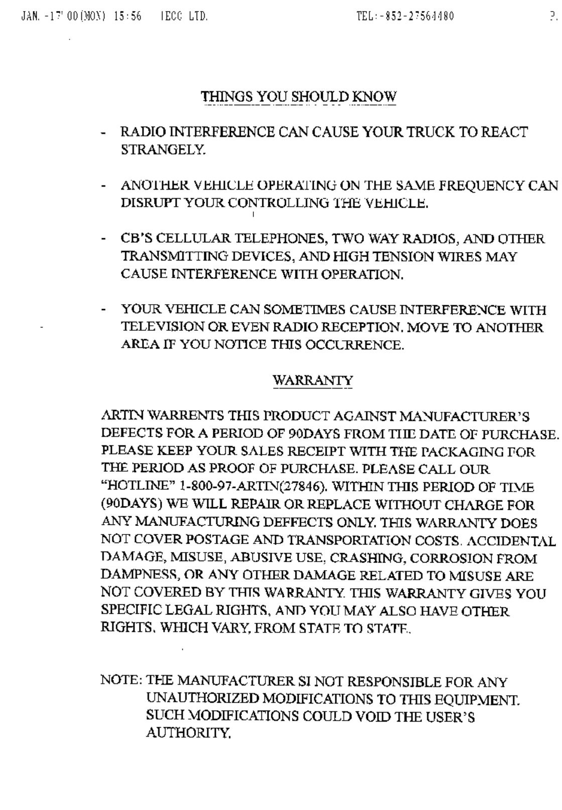 Artin Co 47121 Toy Remote Control TX User Manual page