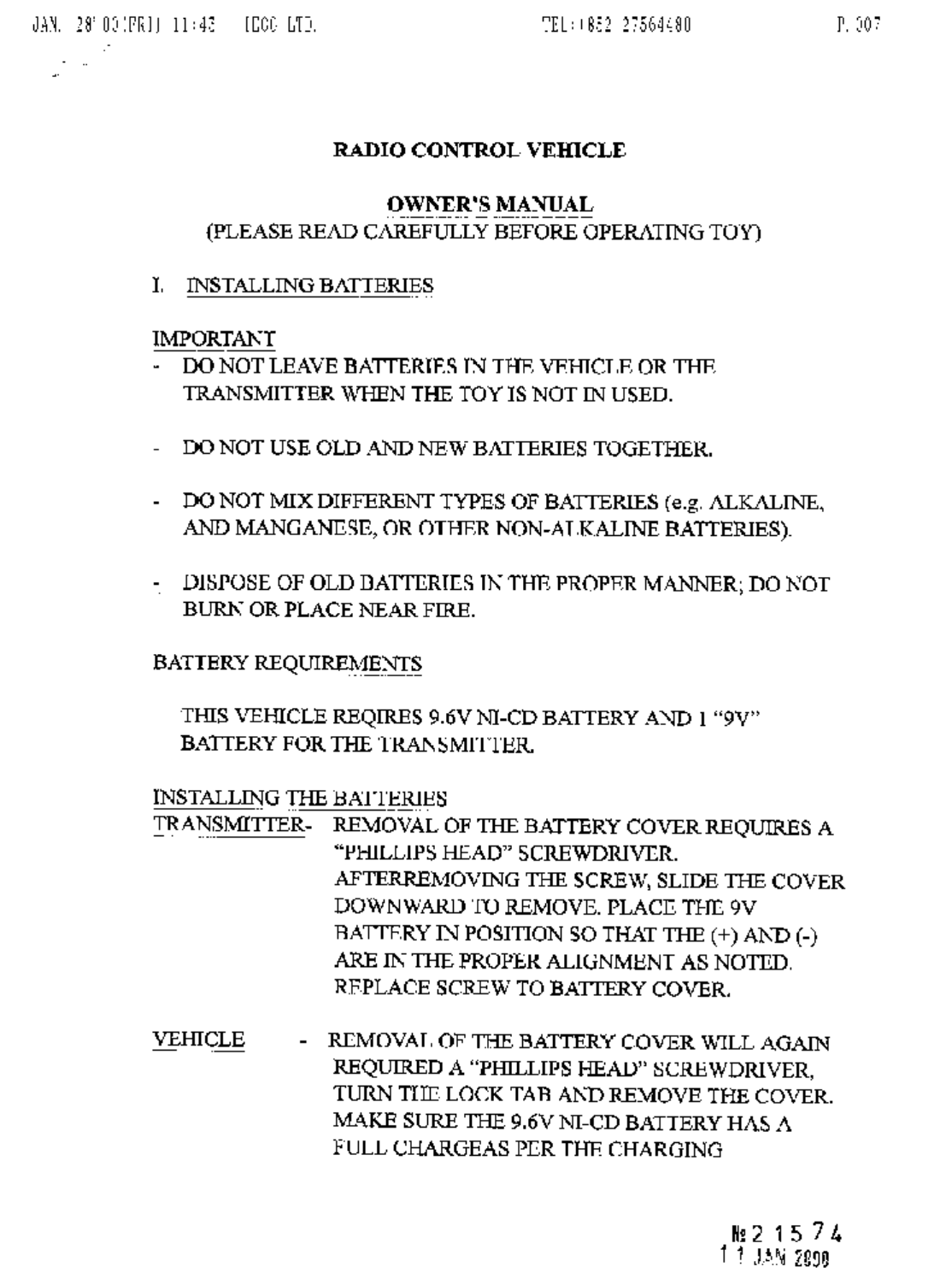 Artin Co 47121R R/C Receiver User Manual page