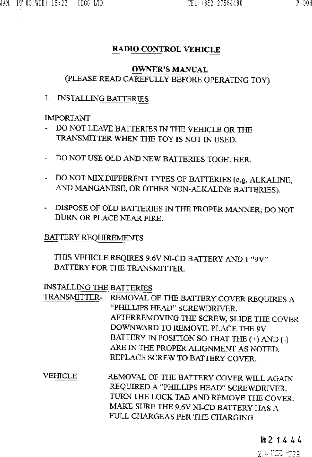 Artin Industrial Co Ltd R/C Toy Transmitter page