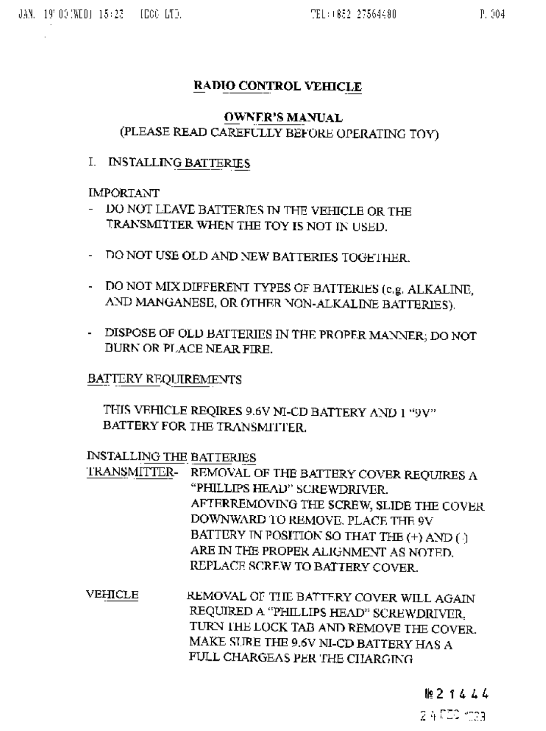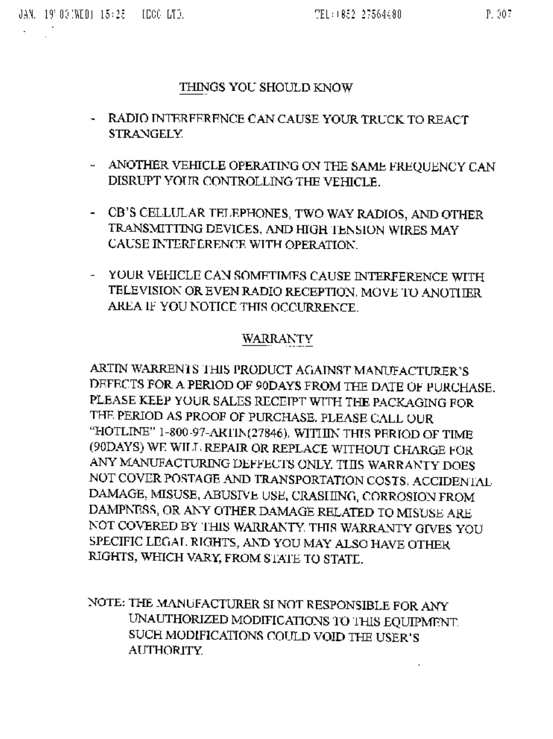 Artin Industrial Co Ltd R/C Toy Transmitter page