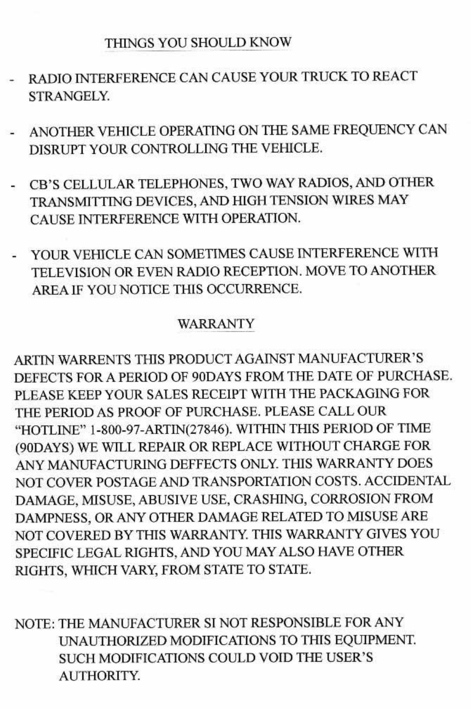 Artin Co 47191R R/C Toy Receiver User Manual User m01