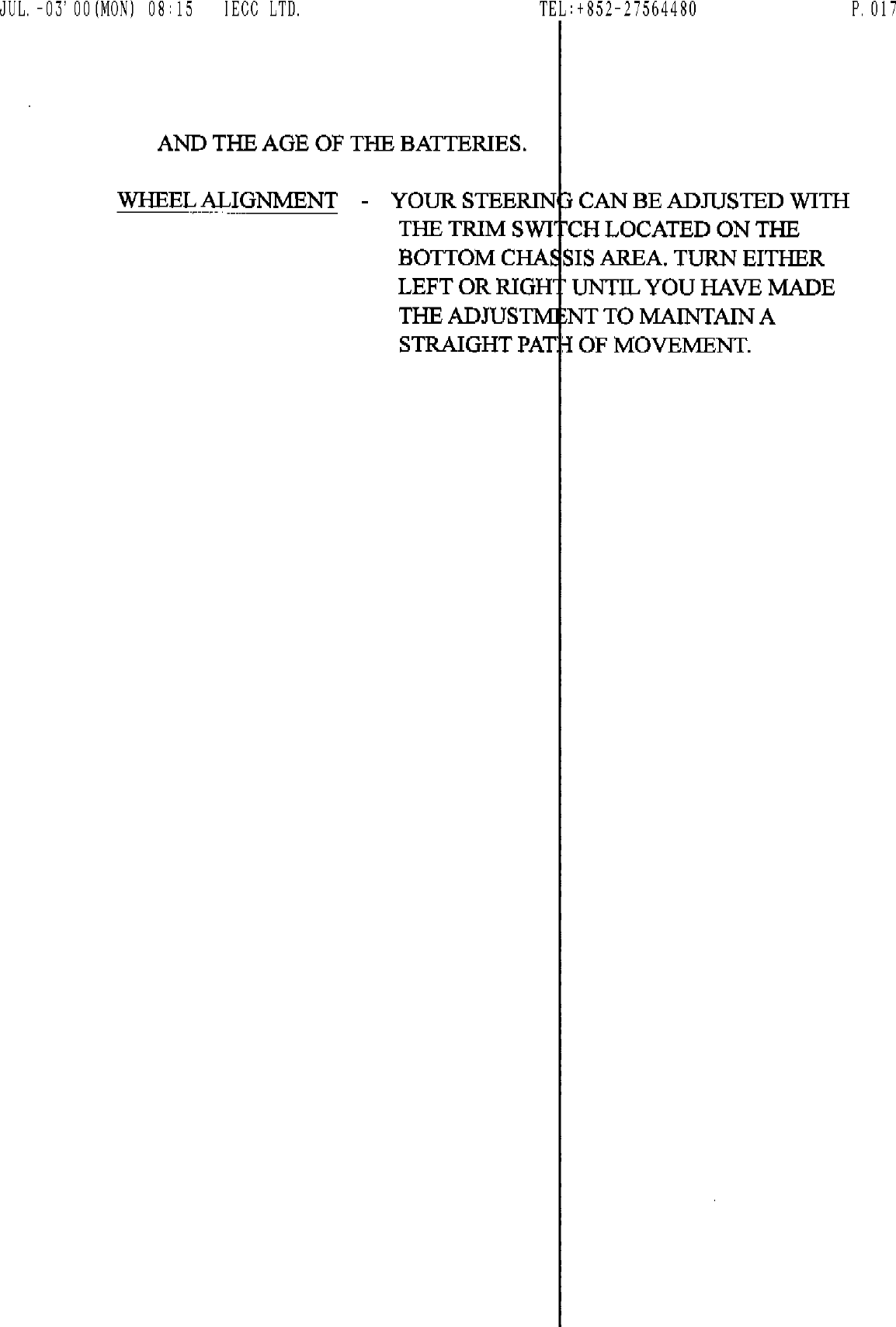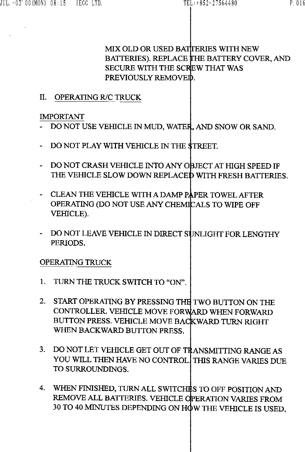 Artin Industrial Co Ltd Remote Control Car Users Manual