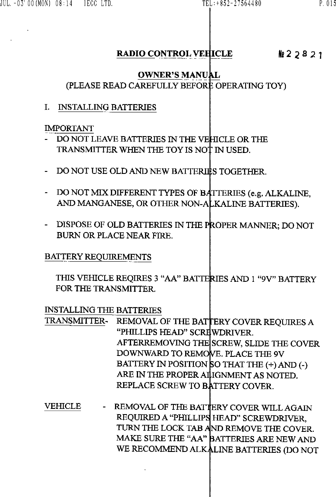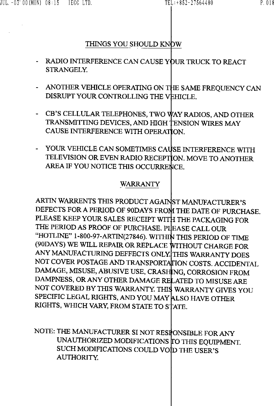 Artin Industrial Co Ltd Remote Control Transmitter Users Manual