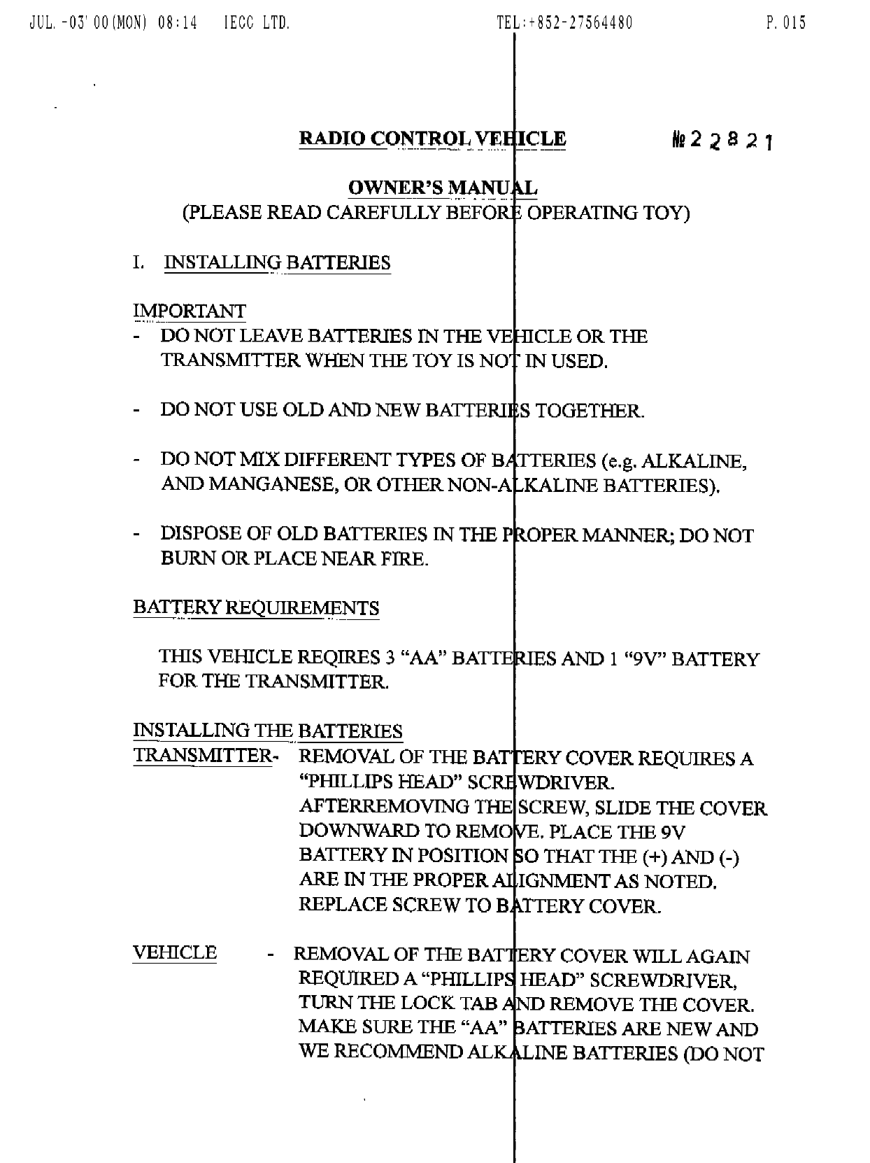 Artin Industrial Co Ltd Remote Control Transmitter Users Manual